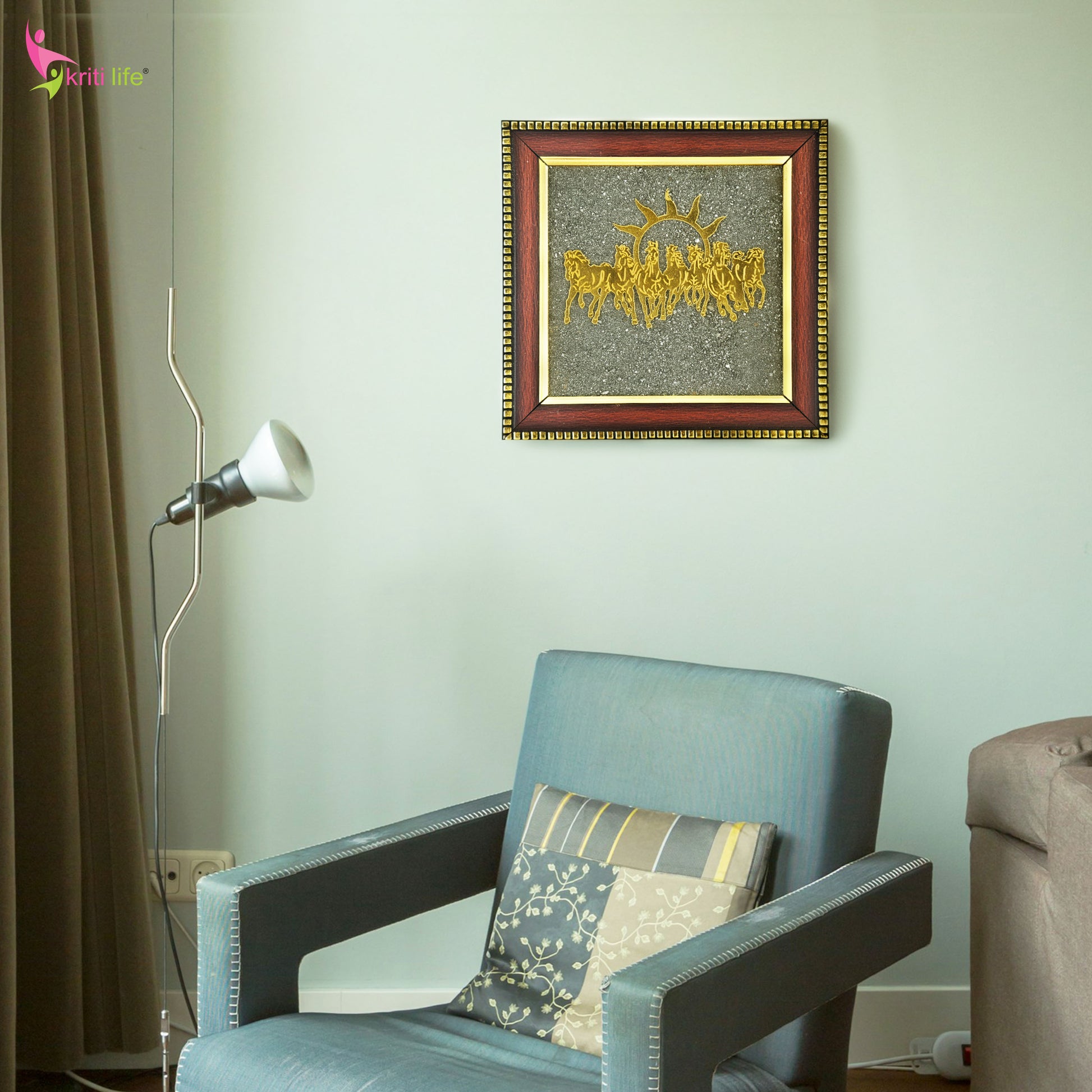 7 Running Horses Raw Pyrite Frame – Wealth, Success & Positive Energy