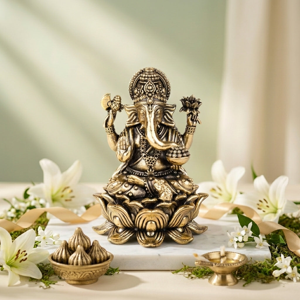 Antique Brass Ganesh Idol β Premium Lotus Base Showpiece