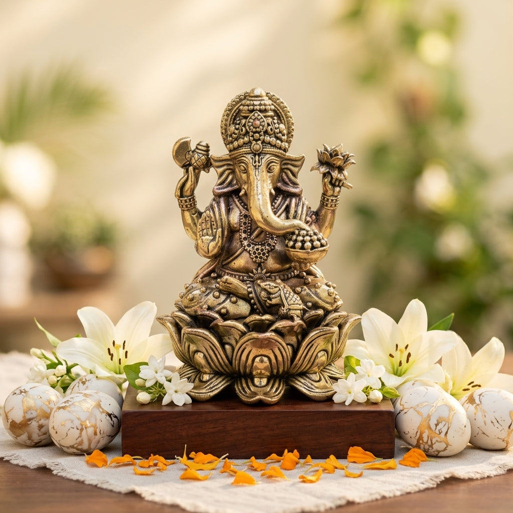 Shop NowAntique Brass Ganesh Idol β Heavy Premium Lotus Base Showpiece