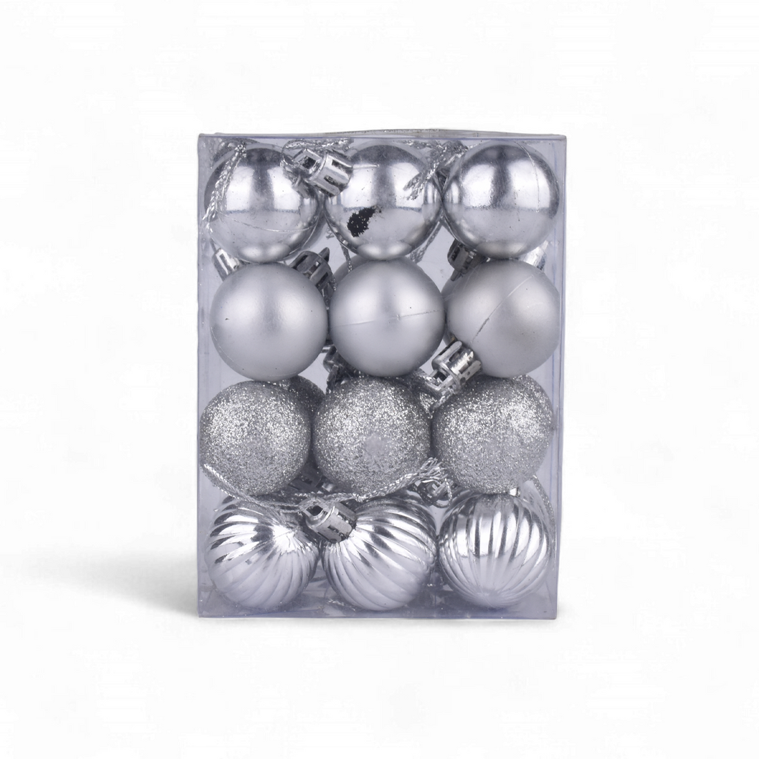Silver Christmas Tree Hanging Balls – Pack of 24 | Glossy & Glitter Ornaments
