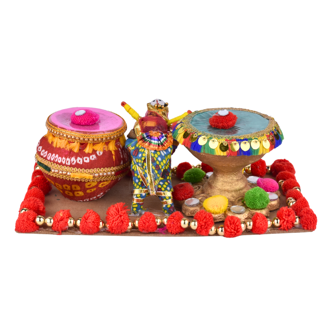 Holi Gulal Platter with Puppet – Designer Holi Thali with 6 Colour