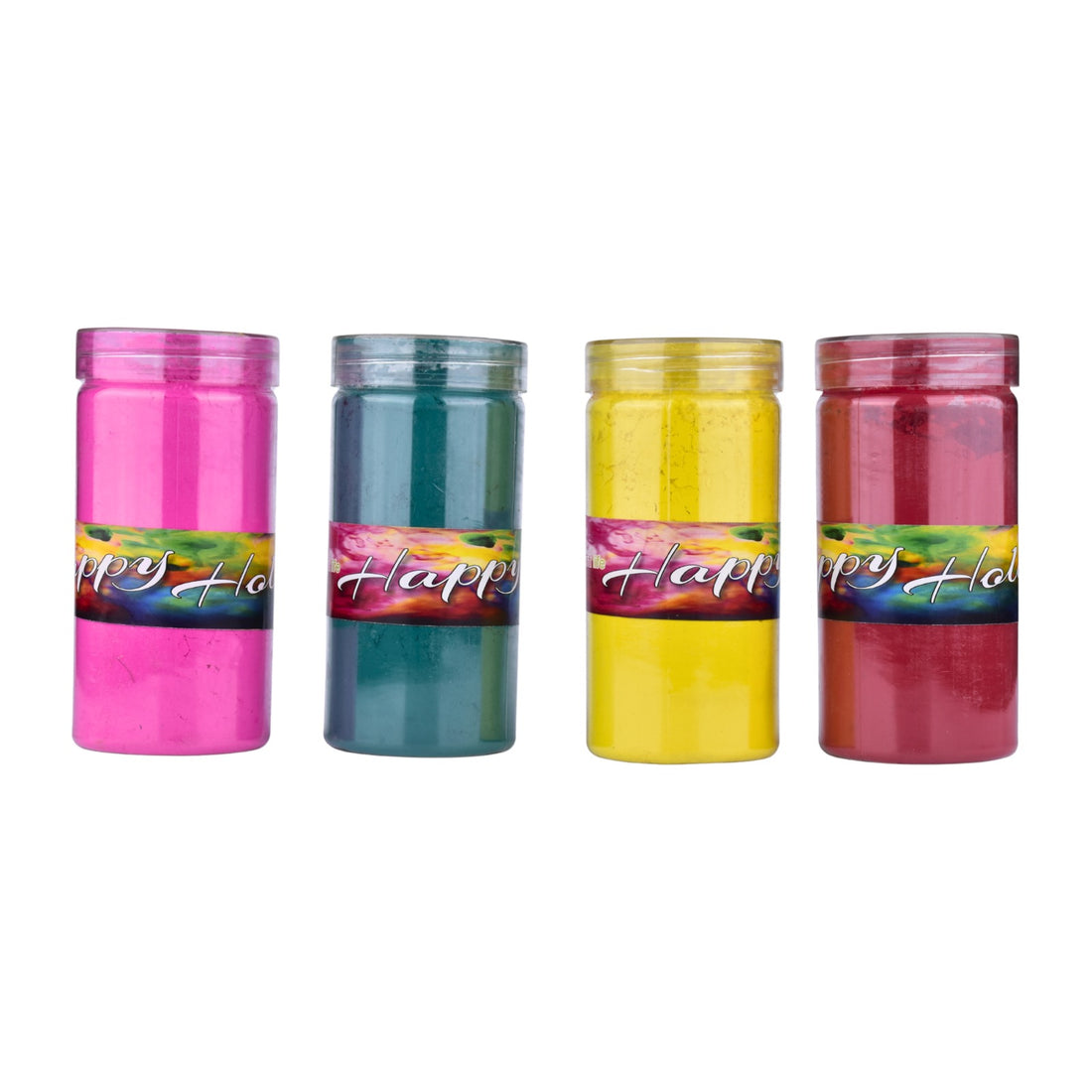Holi Gulal Pack of 4 | Decorative Colour Jars with Golden Lids
