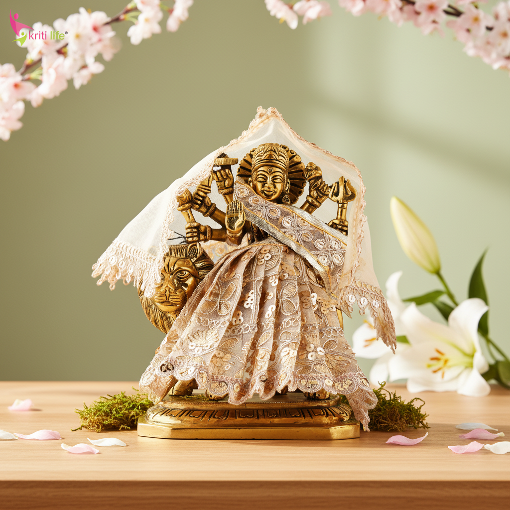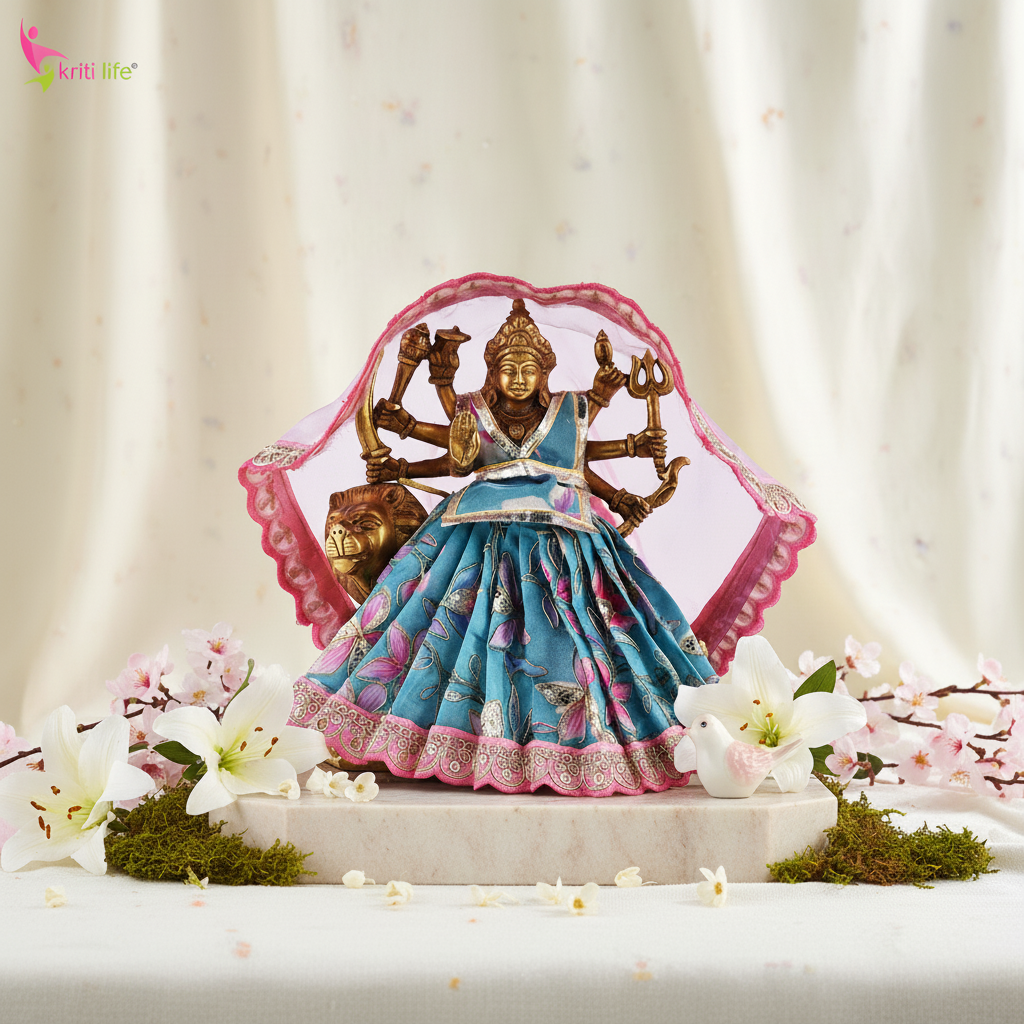 Mata Rani Dress for 12 Inch Idol – Traditional Durga Maa Vastra Set with Dupatta