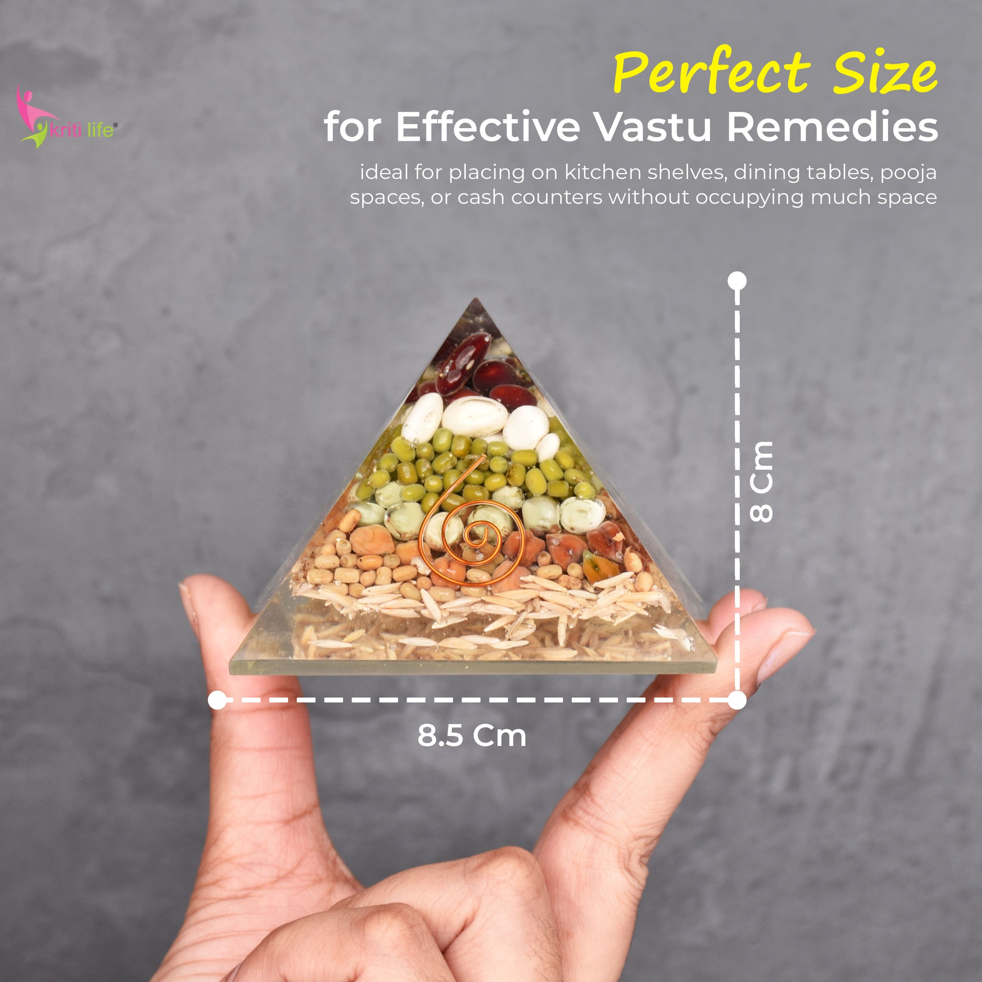 Annapurna Pyramid | Energised Grain Pyramid with Cowries & Copper Coil for Prosperity & Food Abundance
