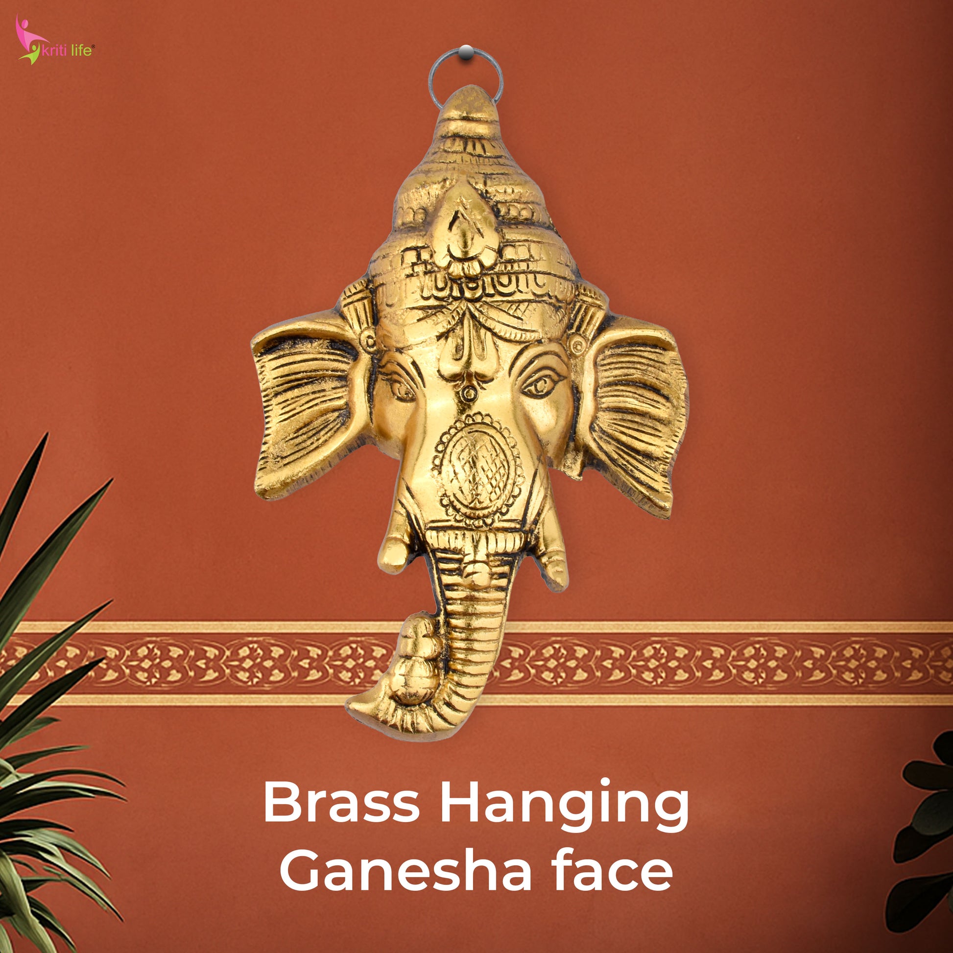 • Brass wall mount featuring Ganesha's face – a spiritual symbol of wisdom and protection for your home.