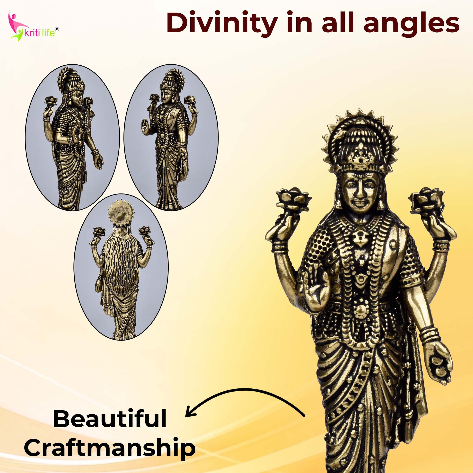 - Brass statue of Goddess Lakshmi, the goddess of wealth