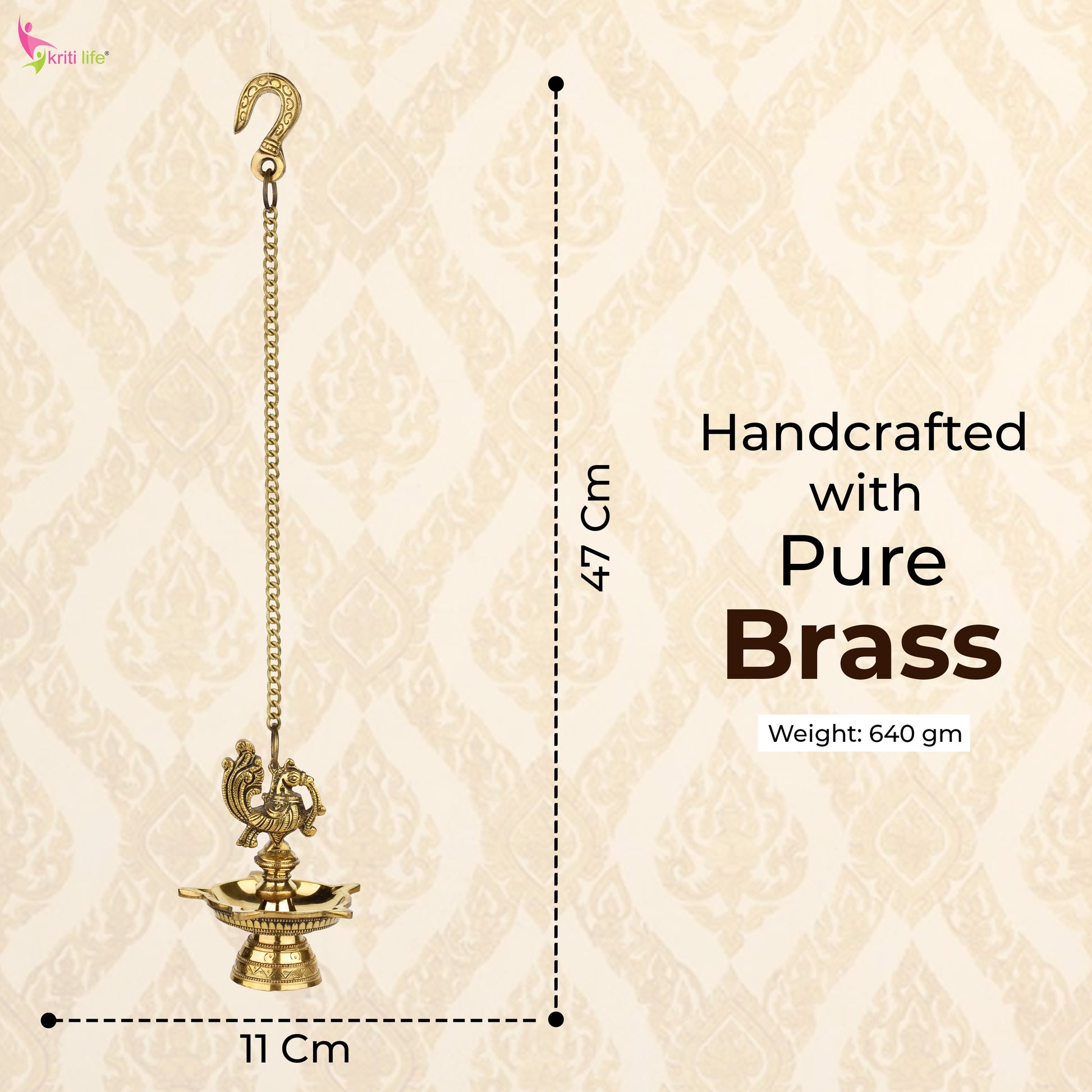Brass Hanging Peacock Wall Mount Diya with Chain | 47 cm Hight |
