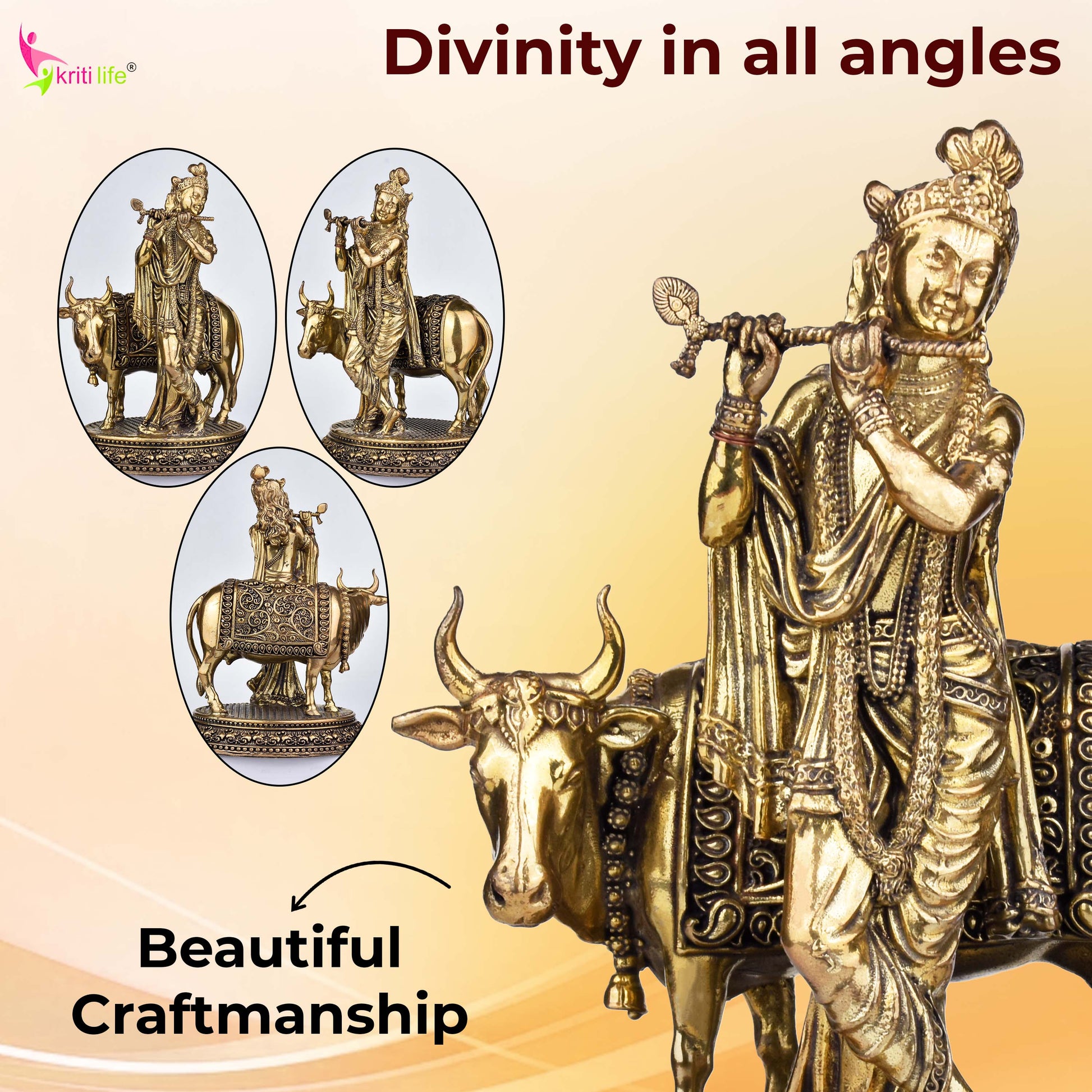 Brass Krishna with Cow Idol – Divine Spiritual Figurine 6.5 inches for Home & Office Décor