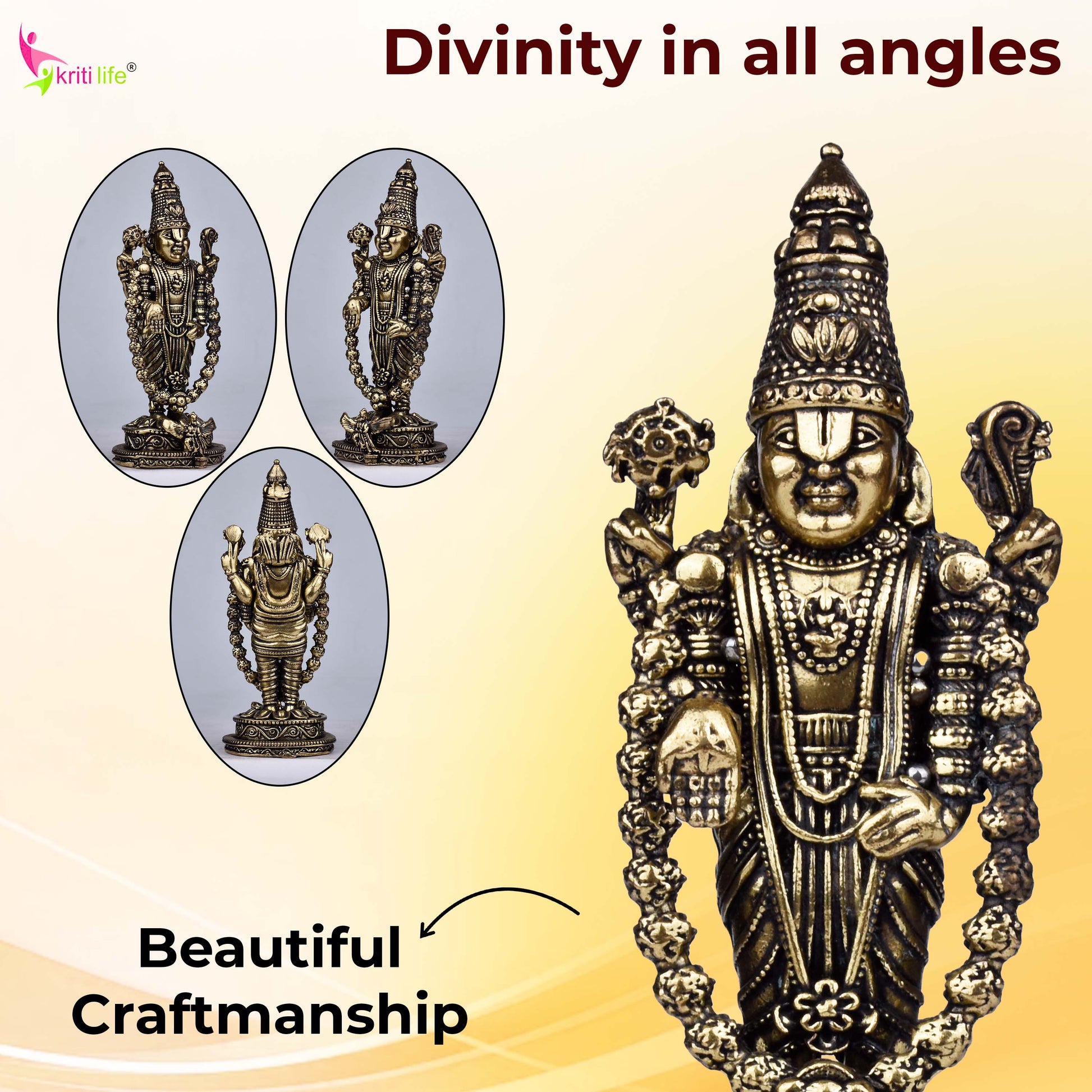 Brass Lord Venkateswara Idol – Handcrafted Balaji Statue 4 inches for Home Temple & Wealth Blessings