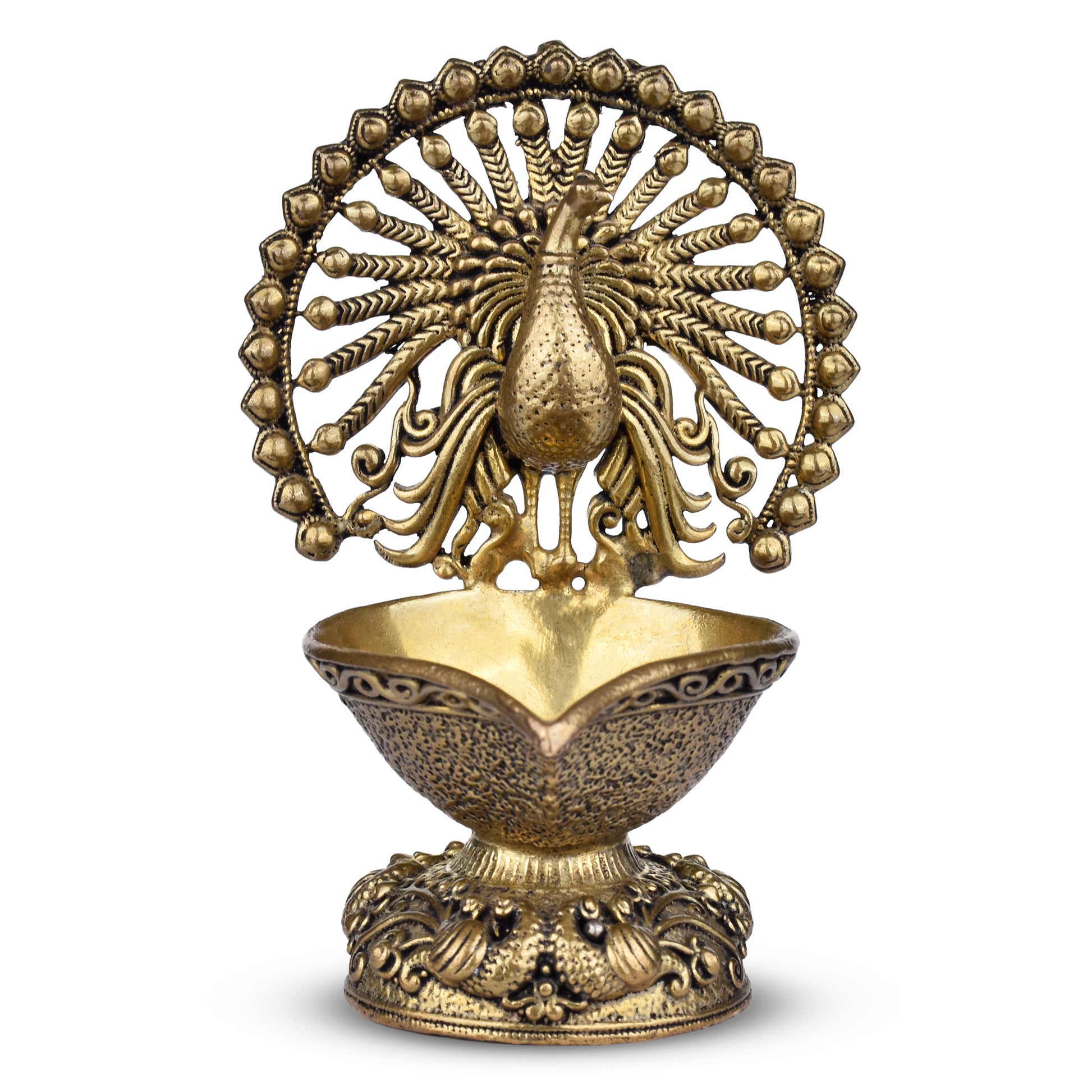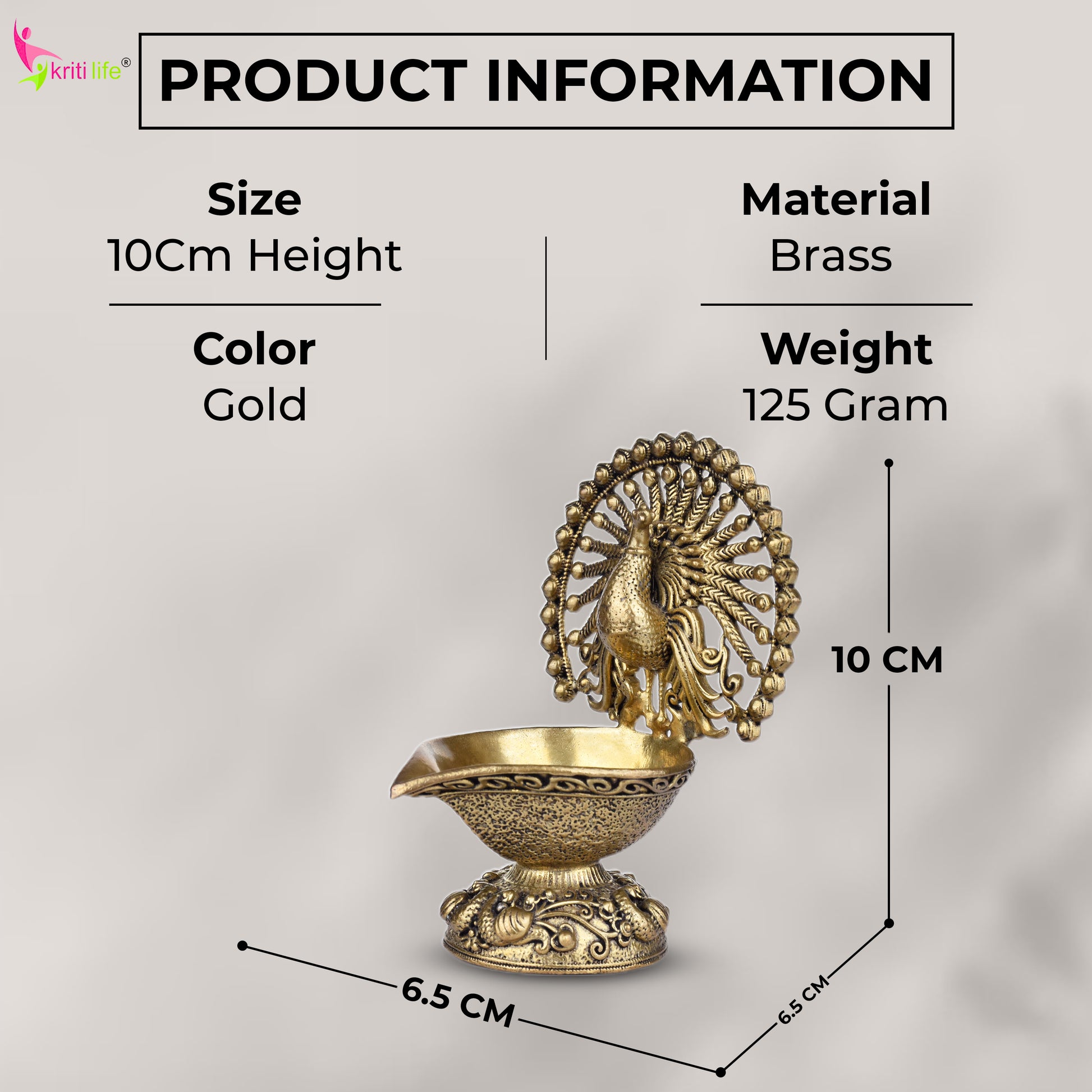 Brass Peacock Design Diya – Traditional Oil Lamp 4 inches for Pooja, Home & Festive Décor