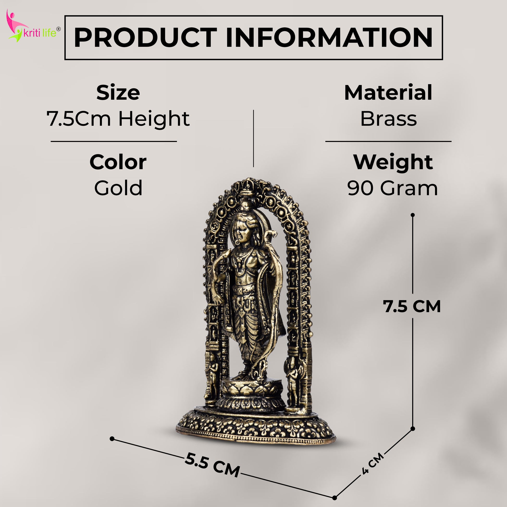 This idol captures young Lord Ram standing gracefully under a richly detailed arch, holding a bow — symbolic of his dharma even in childhood. Handcrafted in brass and finished with an antique texture, this idol is a powerful addition to your pooja room, temple décor, or spiritual collection.