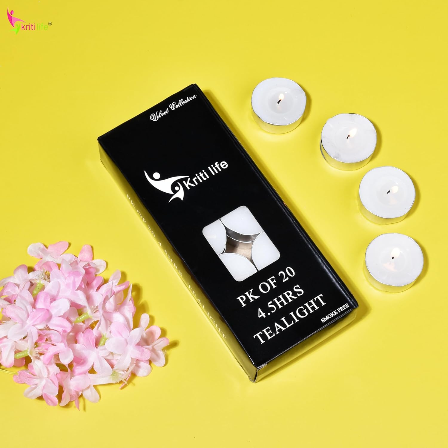 Bring light and warmth to your space with Kriti Life's 4.5-hour tealight candles. Made from high-grade paraffin wax, these candles are designed to burn cleanly without producing smoke, making them perfect for indoor use in your puja room, spa setup, aromatherapy, or romantic dinners.