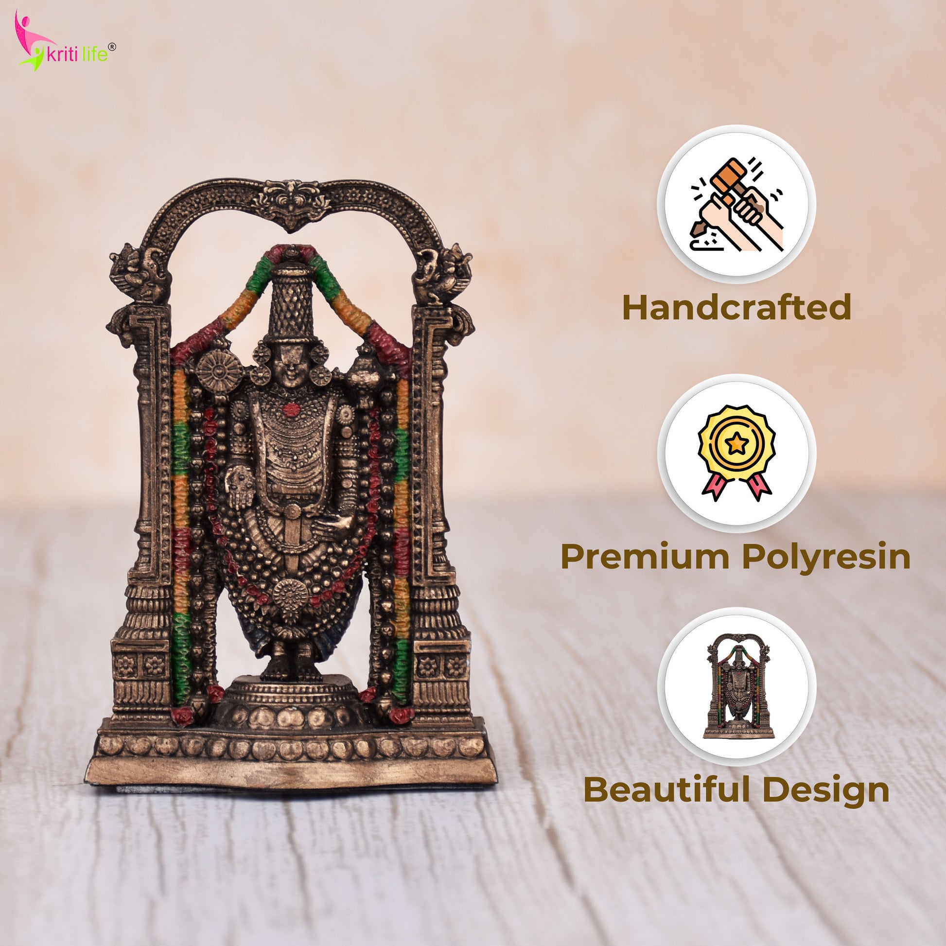 Lord Venkateswara Idol | Antique Finish - 3 inches - Polyresin Balaji Statue for Home Temple & Gifting