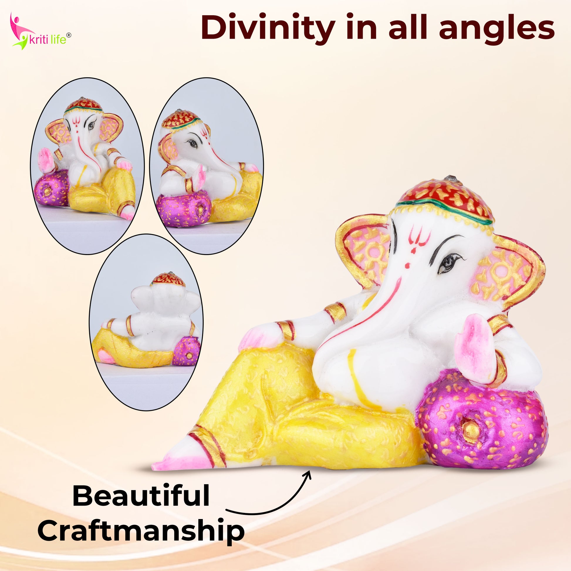 Divine Reclining Ganesha Idol – Premium Marble Dust Ganpati Figurine 3 inches for Pooja & Gifting