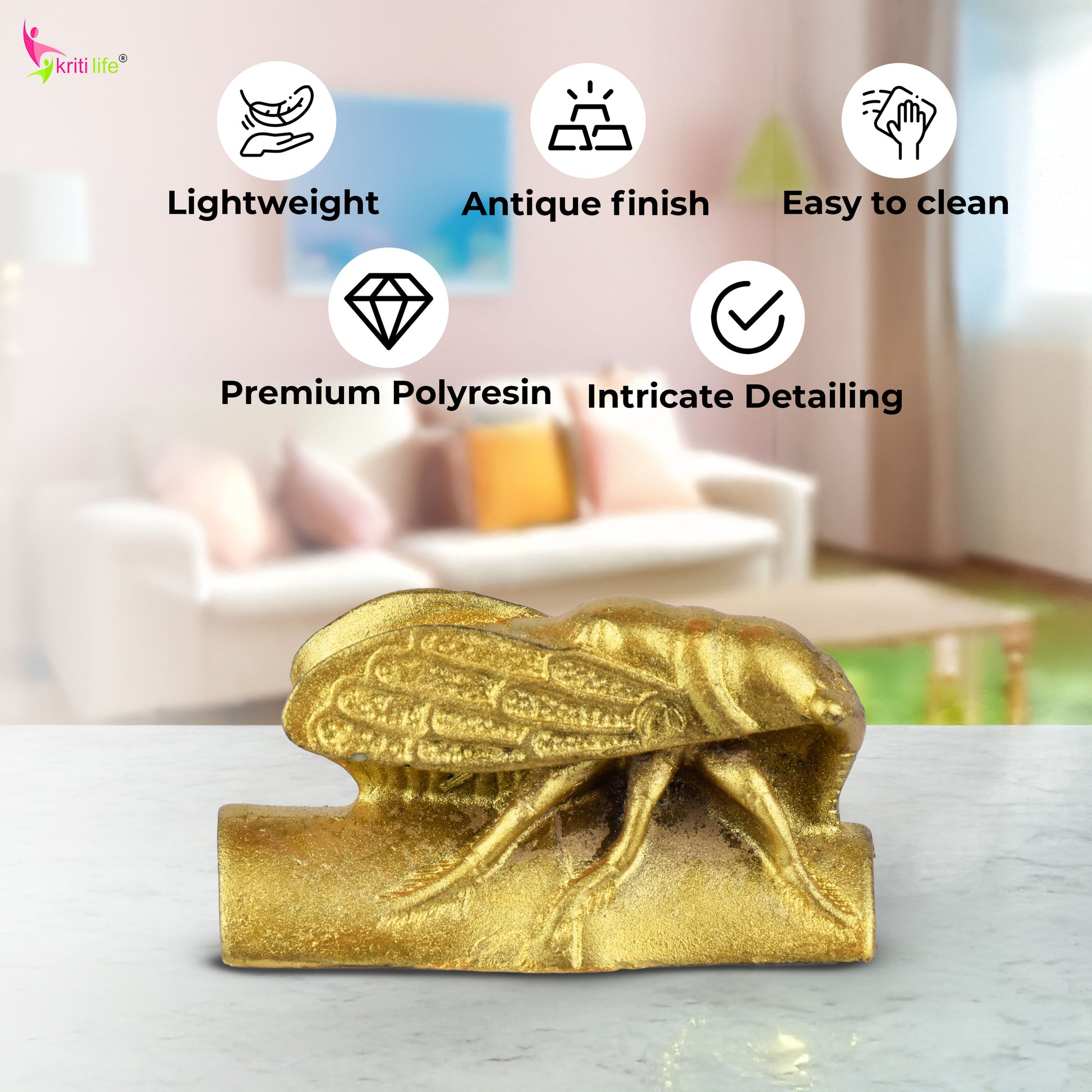 Kriti Life presents the Feng Shui Cicada Idol – a powerful symbol of career protection, mental focus, and positivity. Crafted from premium polyresin with a rich antique finish, this intricately detailed idol is designed to protect you from office politics, betrayals, and hidden enemies. In Feng Shui, the Cicada is a traditional cure for enhancing job security and guarding against professional backstabbing. Ideal for working professionals, entrepreneurs, and anyone navigating challenging workplace dynamics.