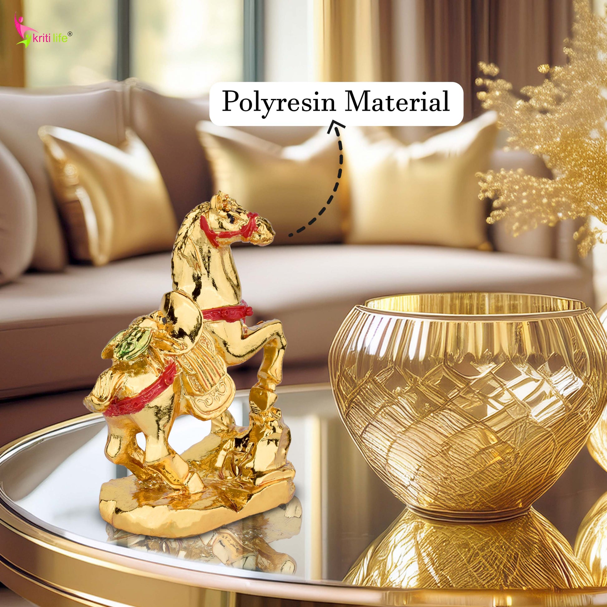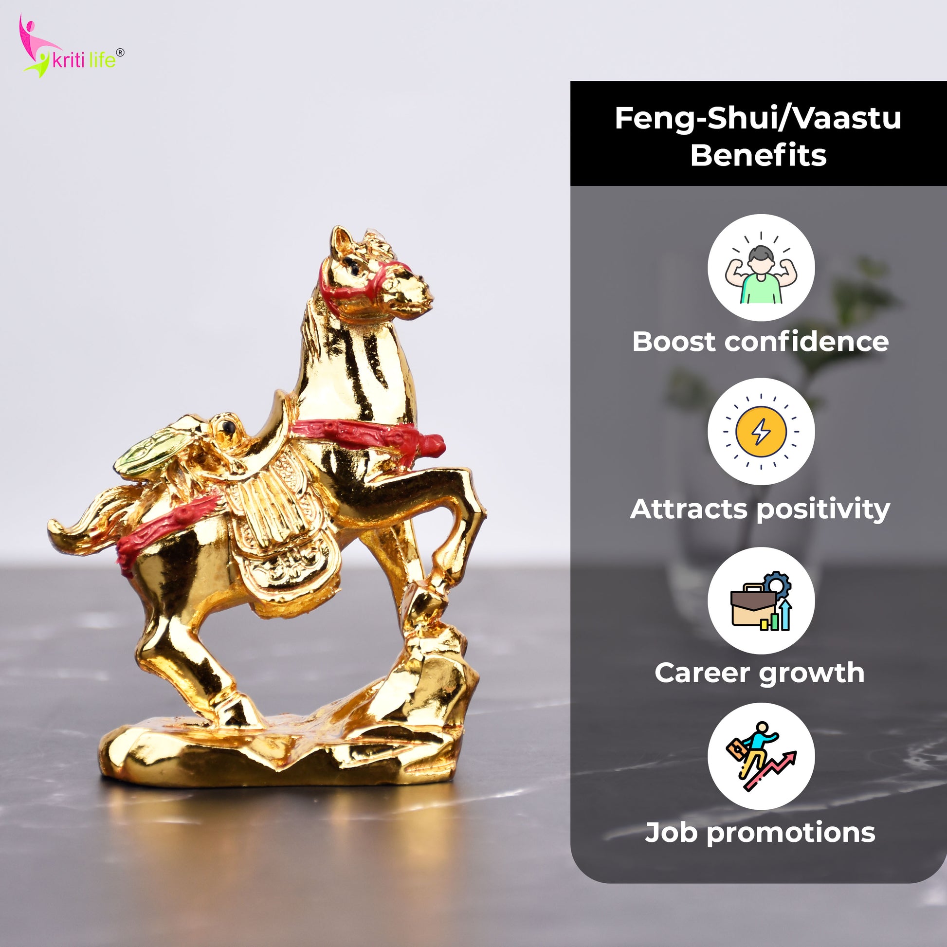 Bring unstoppable energy and sky-high success into your life with the Feng Shui Flying Horse Idol – a powerful symbol of speed, ambition, fame, and upward momentum. Crafted in a golden finish with symbolic red accents, this flying horse is associated with career acceleration, job promotions, and social recognition.