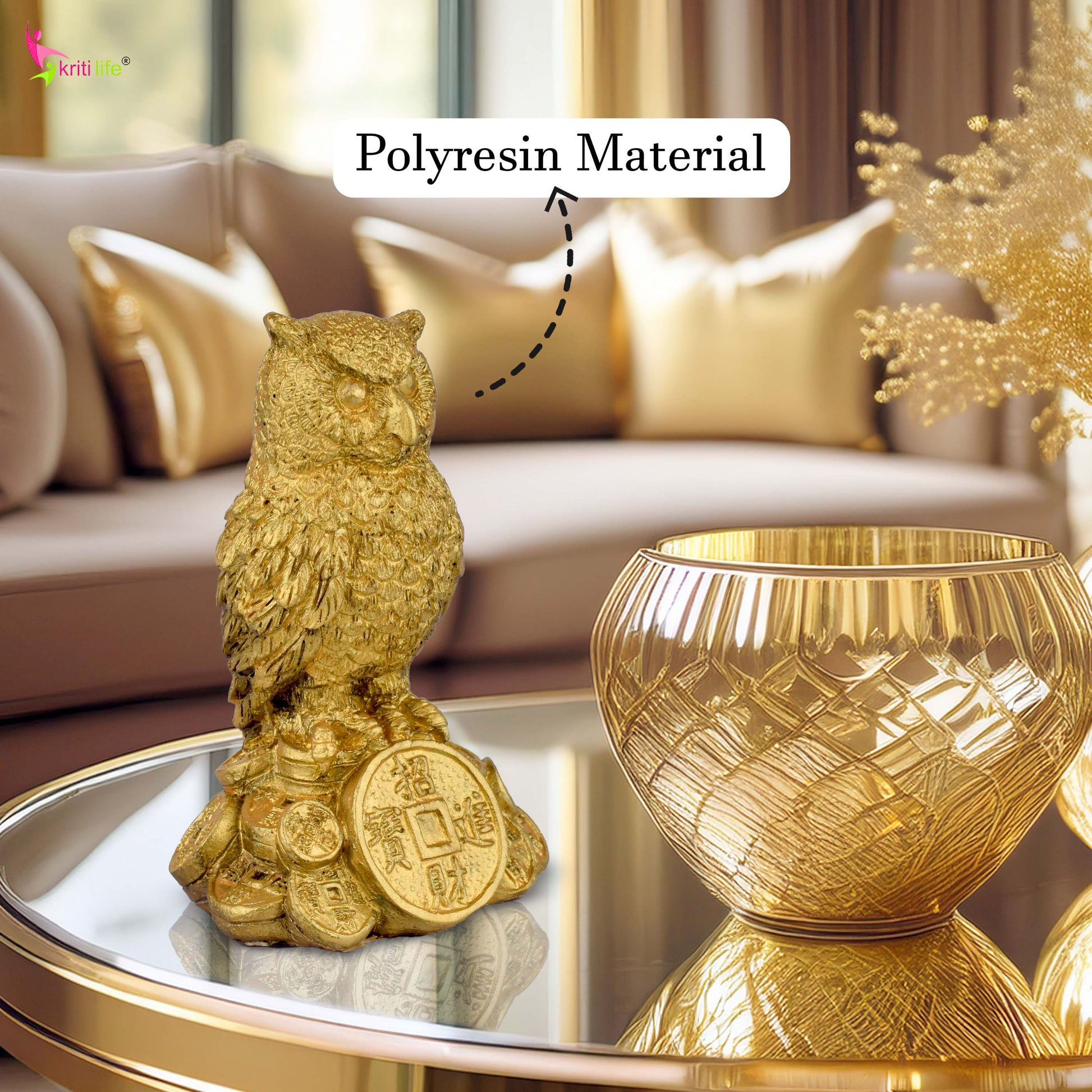 Welcome clarity and protection into your space with Kriti Life’s Feng Shui Owl Idol. Symbolizing wisdom, intelligence, and vigilance, this finely crafted owl is designed using premium polyresin with an antique gold finish. Ideal for homes, offices, or study rooms, the owl offers not just aesthetic elegance but also powerful Feng Shui benefits like protection from bad intentions, enhancement of decision-making ability, and attracting helpful people.