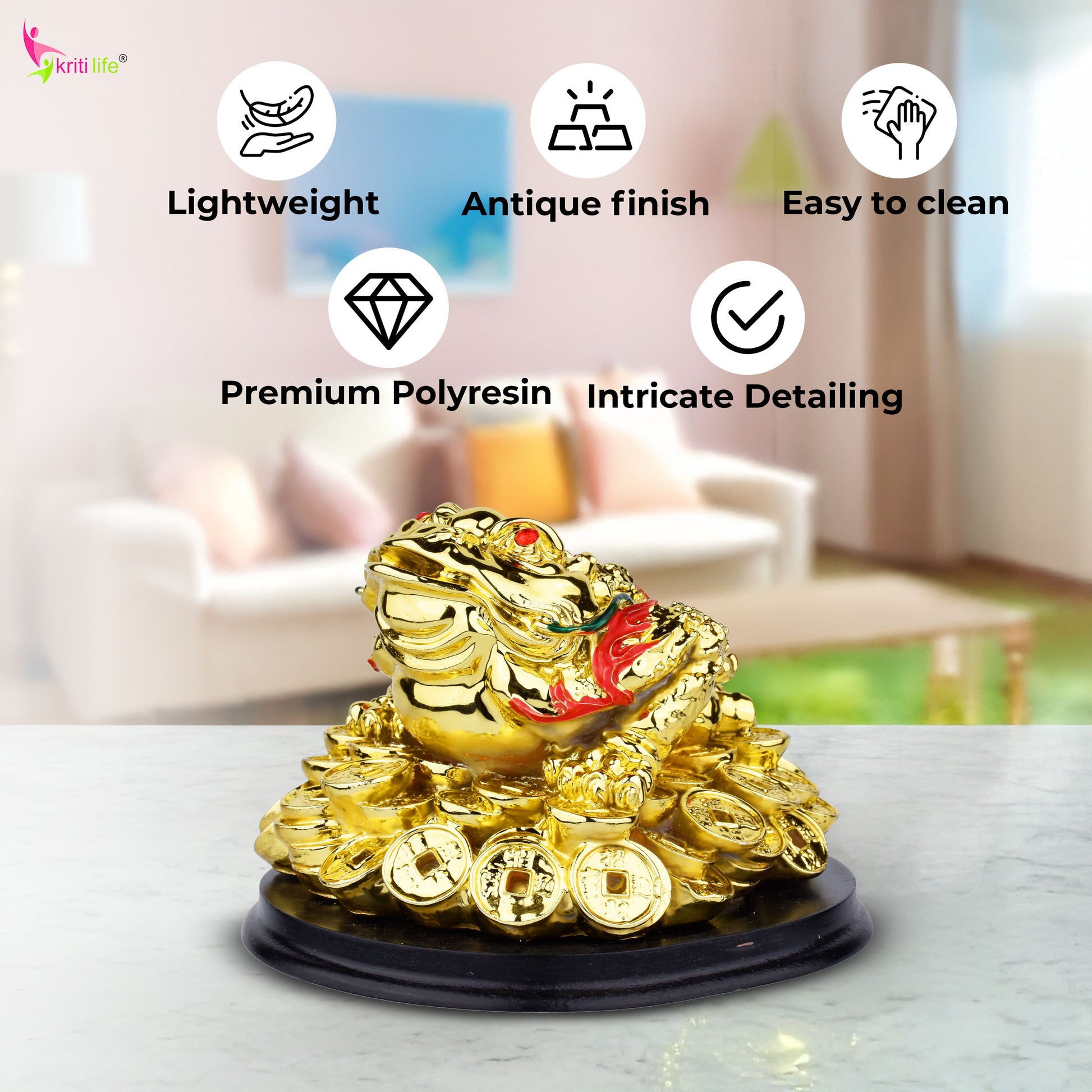Feng Shui Wealth Frog Idol | Polyresin Wealth Toad Showpiece for Cash Flow, Business Growth & Luck- 4.5 inches