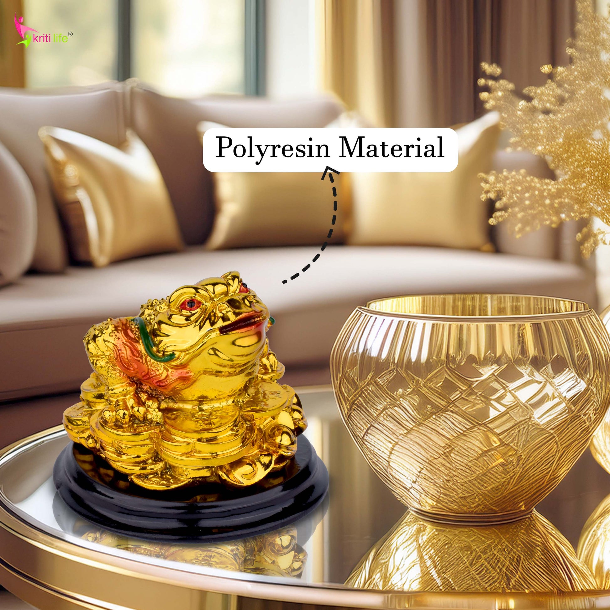 Invite wealth, financial security, and prosperity into your space with this beautifully crafted Feng Shui Wealth Frog Idol, also known as the Three-Legged Money Toad. Made from premium polyresin with an antique golden finish, this iconic Feng Shui symbol is believed to attract abundance, business growth, and continuous cash flow when placed in the right direction—ideally in the Southeast corner of your home, shop, or office.