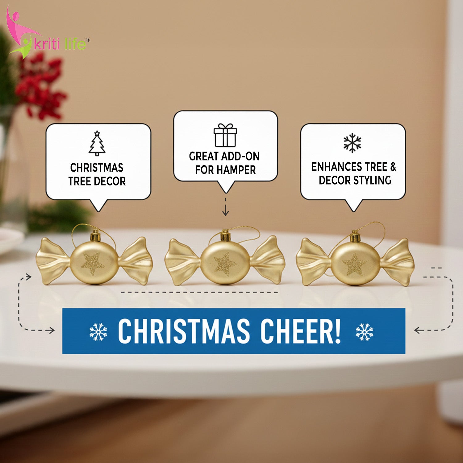 Bring home the festive charm with Kriti Life’s Golden Candy Christmas Hanging Ornaments – the perfect finishing touch to your Christmas tree and holiday décor.