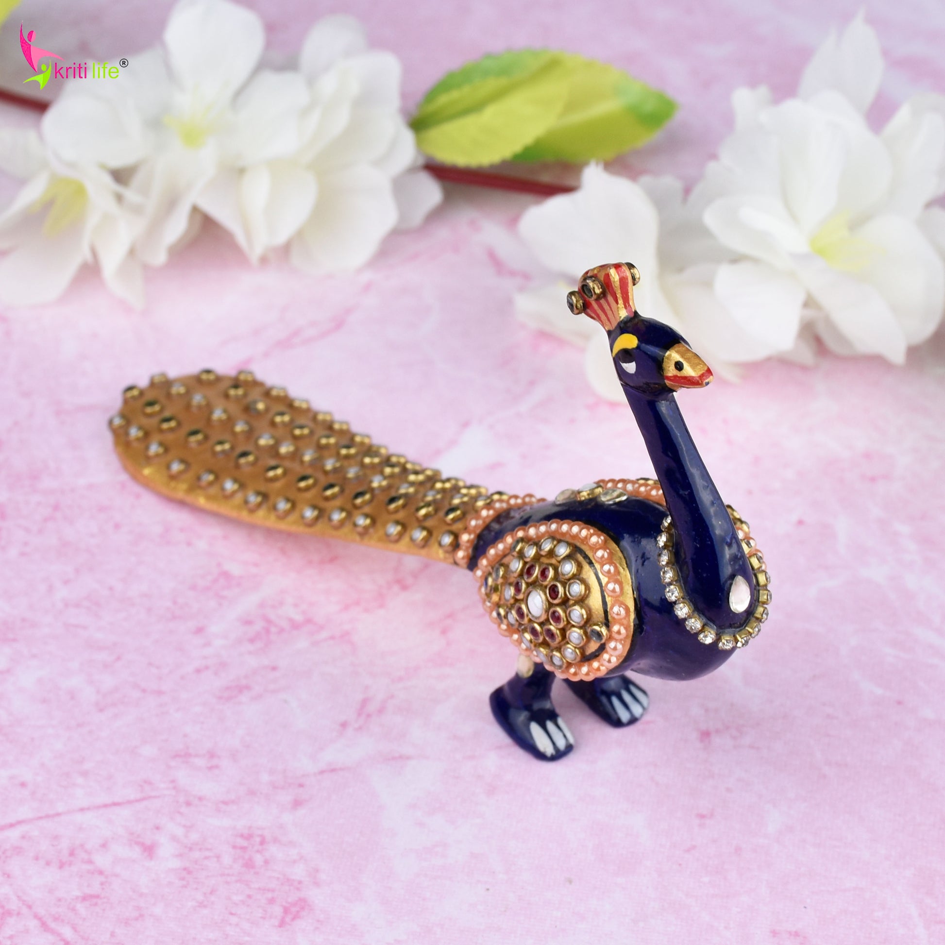 Bring home the beauty of Indian artistry with Kriti Life’s Handcrafted Aluminium Peacock Showpiece. Made from high-quality aluminium, this decor piece is hand-painted with rich enamel colours and embellished with sparkling stones for a royal look. It adds a graceful and ethnic charm to your home, pooja space, or gifting collection. Ideal for table decor, showcases, office desks or as a spiritual gift, this peacock symbolizes beauty, prosperity, and positivity. Lightweight yet sturdy, it’s crafted with care by skilled Indian artisans to offer long-lasting elegance.