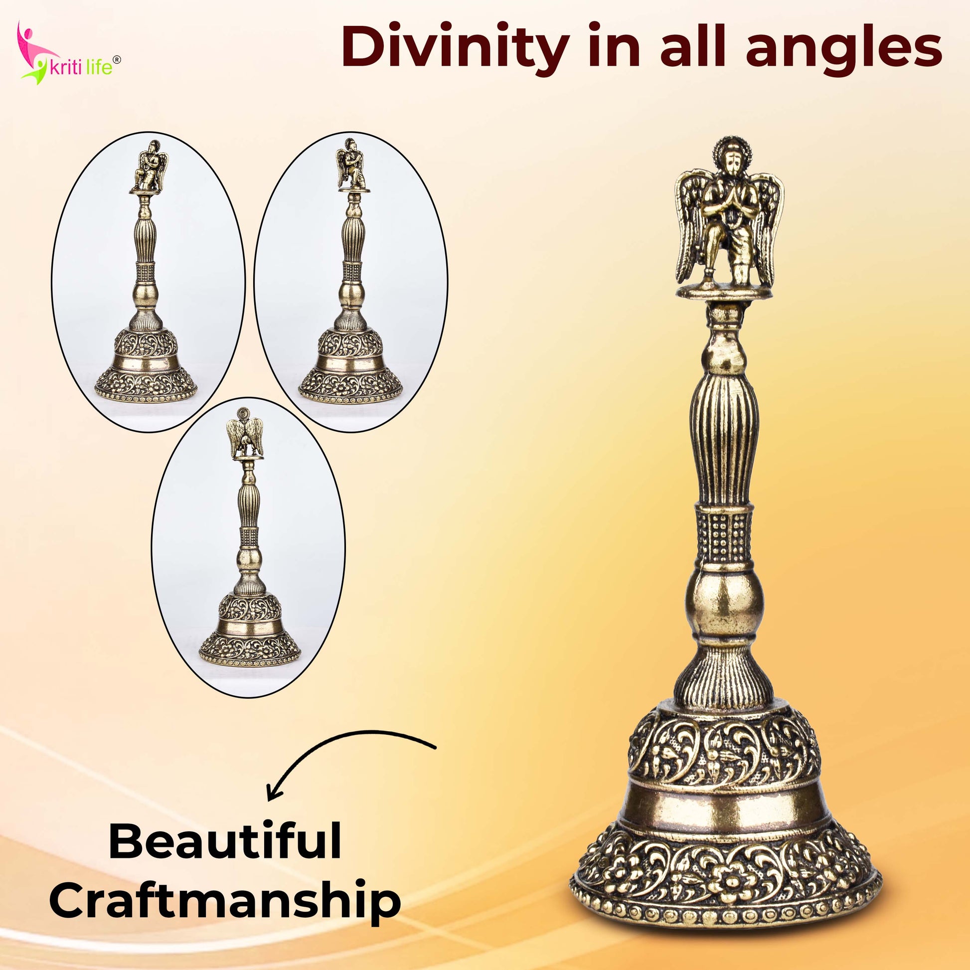Enhance your spiritual rituals with this handcrafted brass pooja bell, crowned with a finely detailed Lord Garuda figure. In Hindu tradition, Lord Garuda is the divine Vahan of Lord Vishnu and symbolizes strength, protection, and divine speed. His presence in your pooja room invokes positivity and shields your space from negative energies.