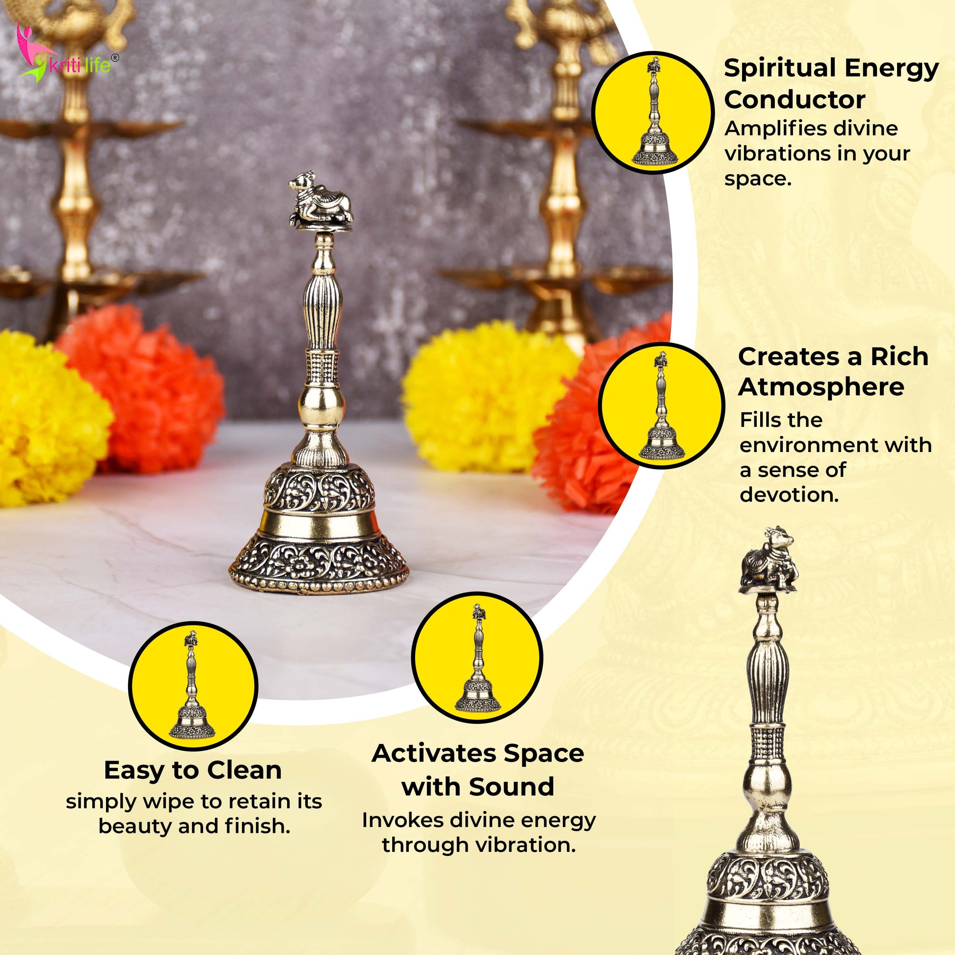 - Spiritual Sound: Clear and soothing tone ideal for daily pooja and meditation.