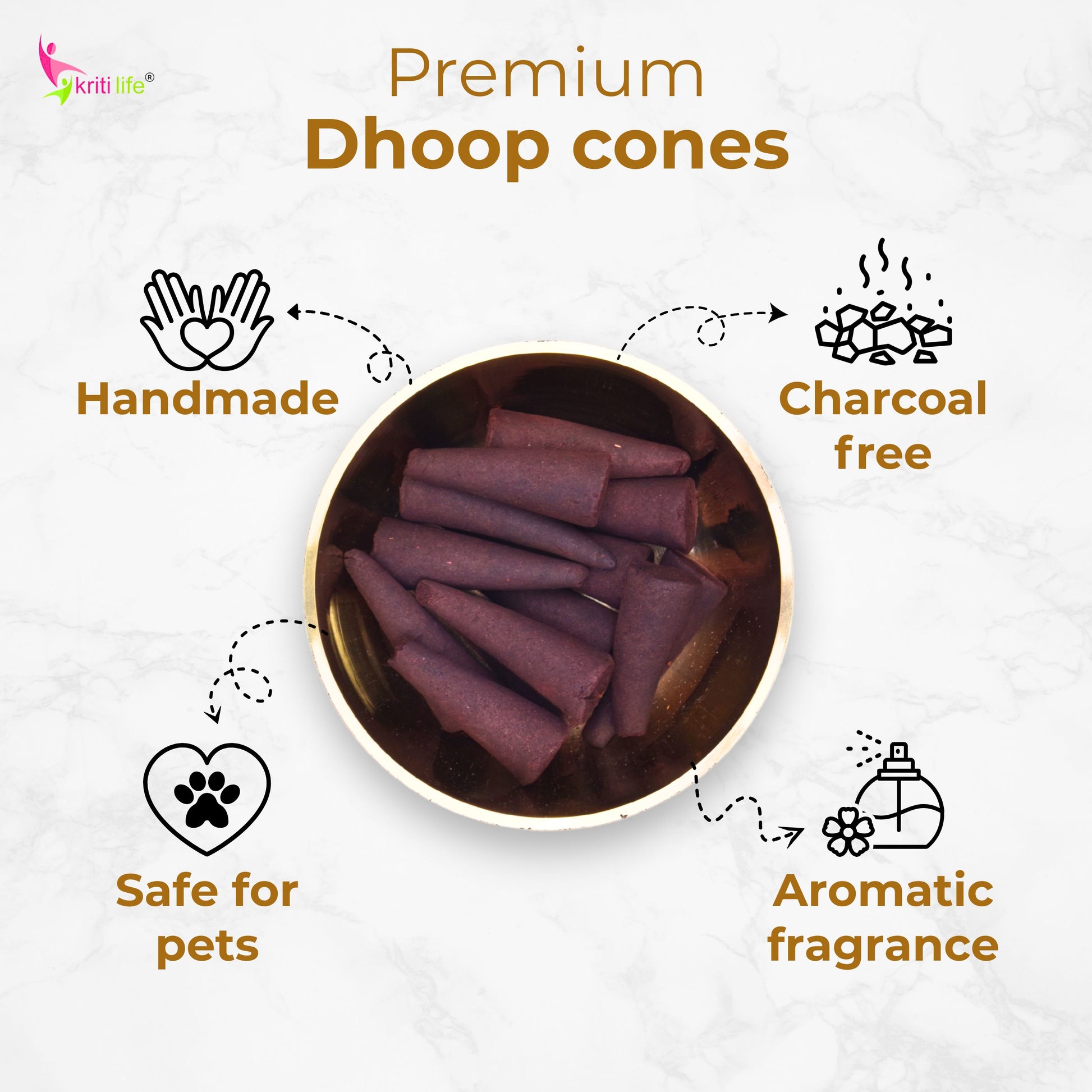 Kriti Life incense cones are thoughtfully crafted to bring a serene and refreshing aroma to your space. Each pack contains approximately 60 handmade cones, each measuring 5 cm in height with a 1.5 cm base diameter. Designed for long-term use, these cones are carefully packed to preserve their quality and natural fragrance. With a burn time of up to 40 minutes per cone, they create a calming atmosphere ideal for Puja, Hawan, meditation, yoga, or everyday home fragrance. Made using natural, charcoal-free ingredients, these eco-friendly incense cones produce minimal smoke while delivering a soothing, long-lasting aroma—perfect for enhancing peace, purifying the air, and elevating your daily rituals.