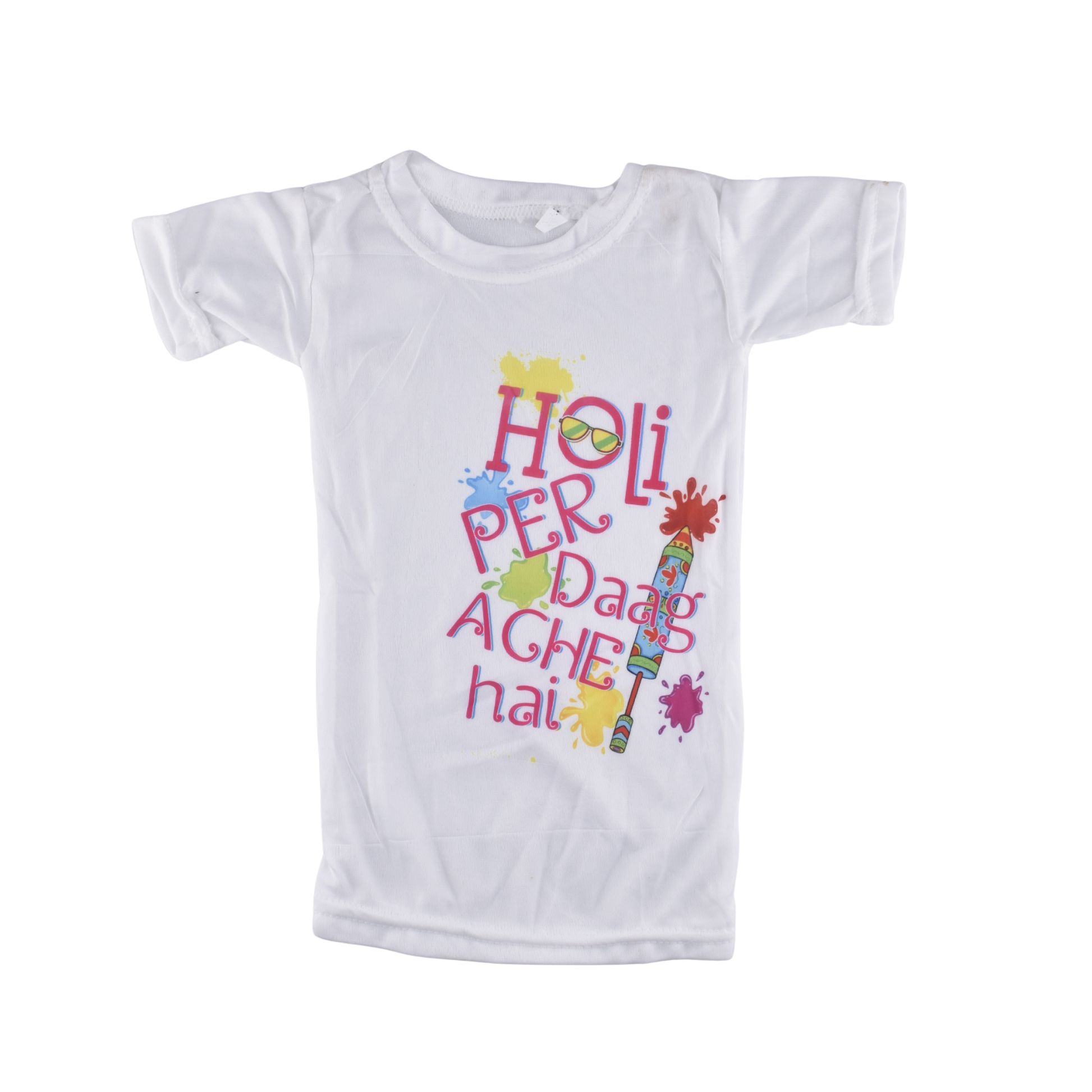 Make your little one’s Holi celebration extra colourful and joyful with this Kids Holi Printed T-Shirt. Designed specially for Holi fun, this soft white t-shirt features bright and playful Holi-themed graphics such as colour splashes, pichkari artwork and cheerful “Happy Holi” messages – perfect for festival photos and outdoor colour play.