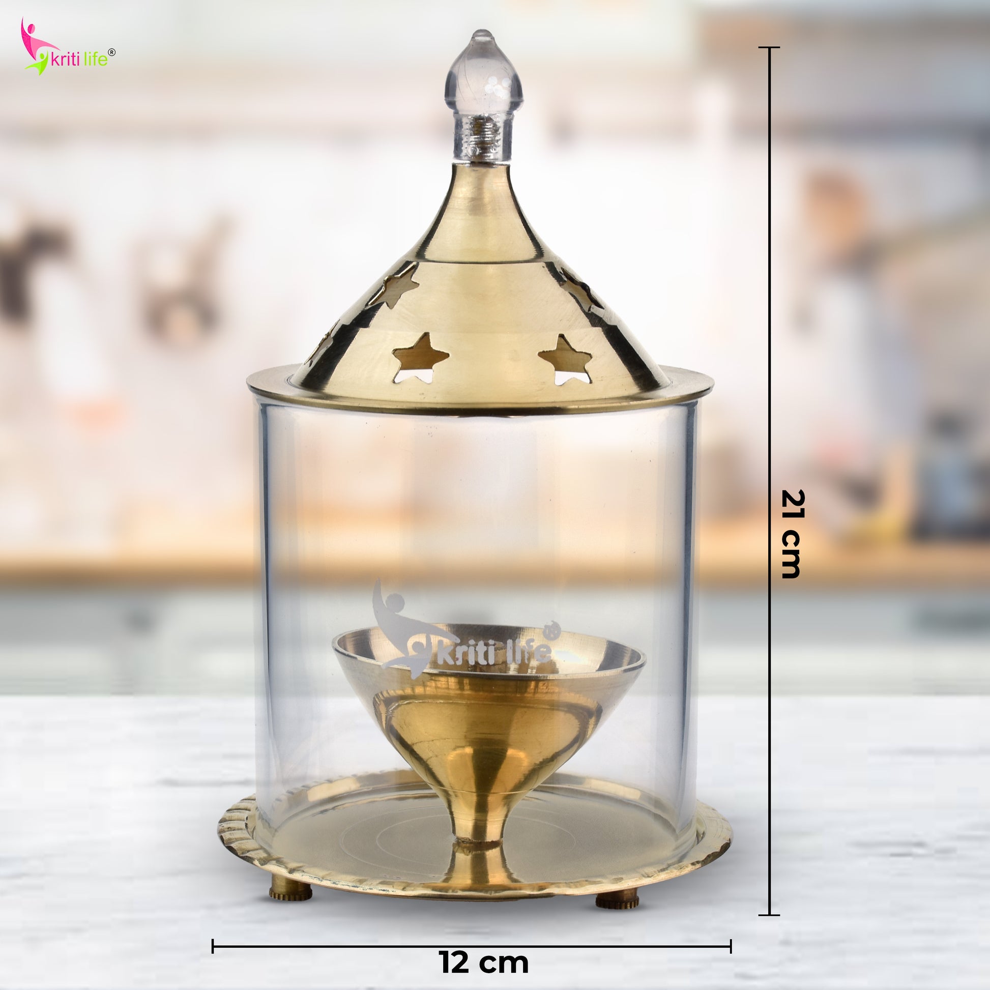 Kriti Life Akhand Jyot Diya –Big size – Brass Diya with Glass Cover for Safe and Continuous Flame | 8 inches