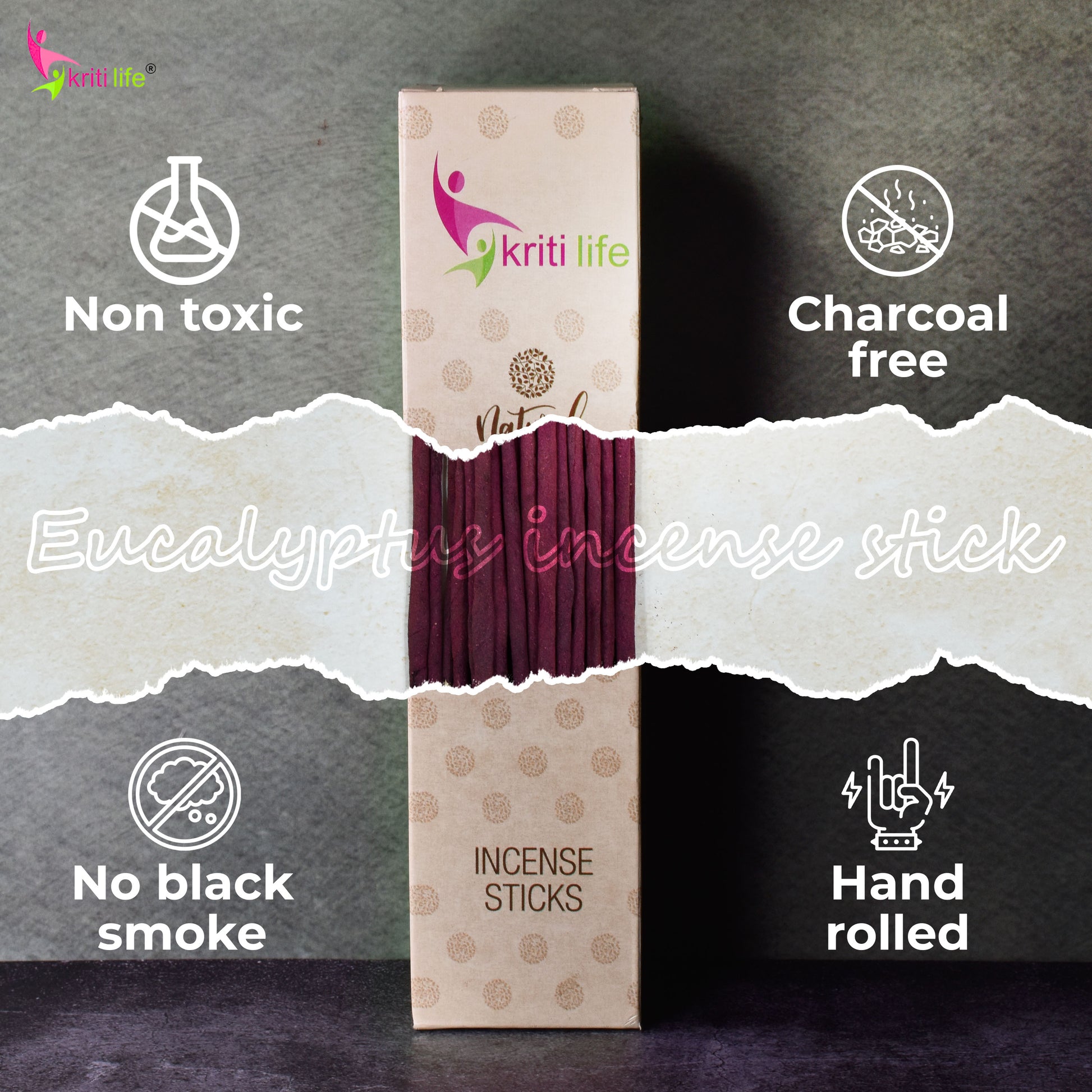 Kriti Life Incense Sticks - Eucalyptus 100 Pcs Perfect for Puja & Relaxation