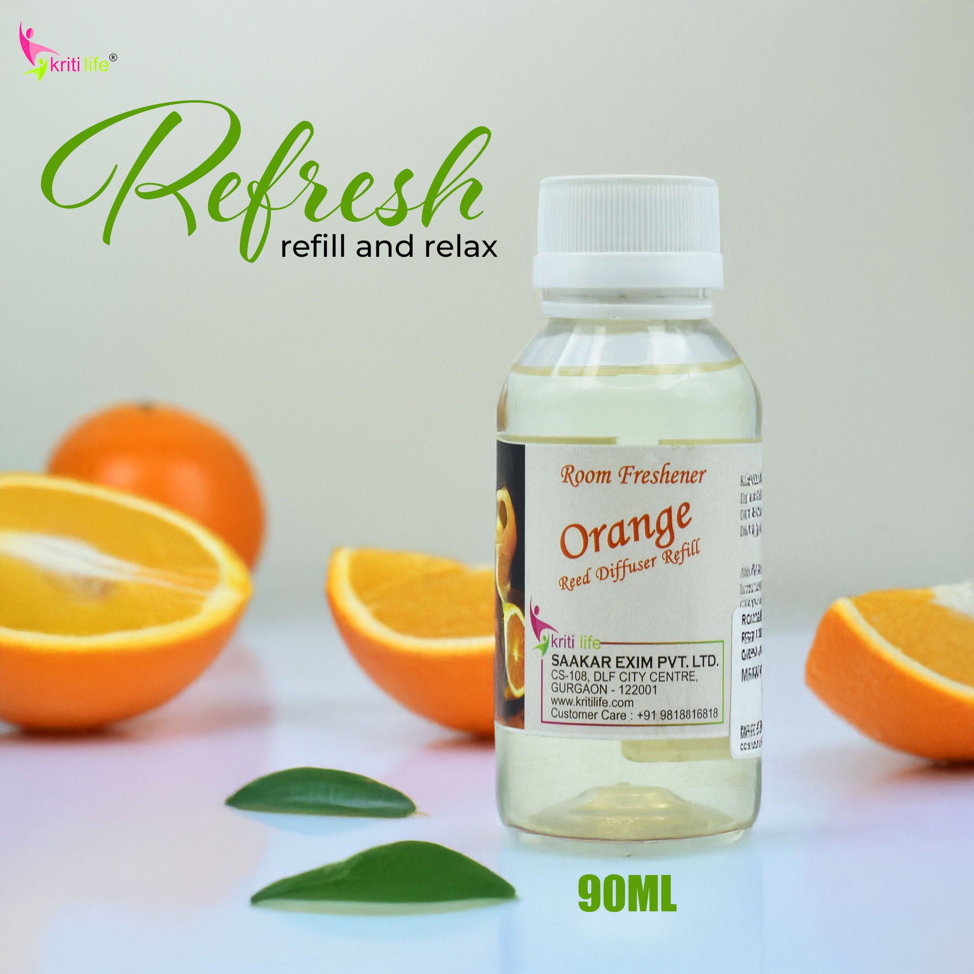 Kriti Life Reed Diffuser Refill - Orange 90ML Long-Lasting Room Fragrance