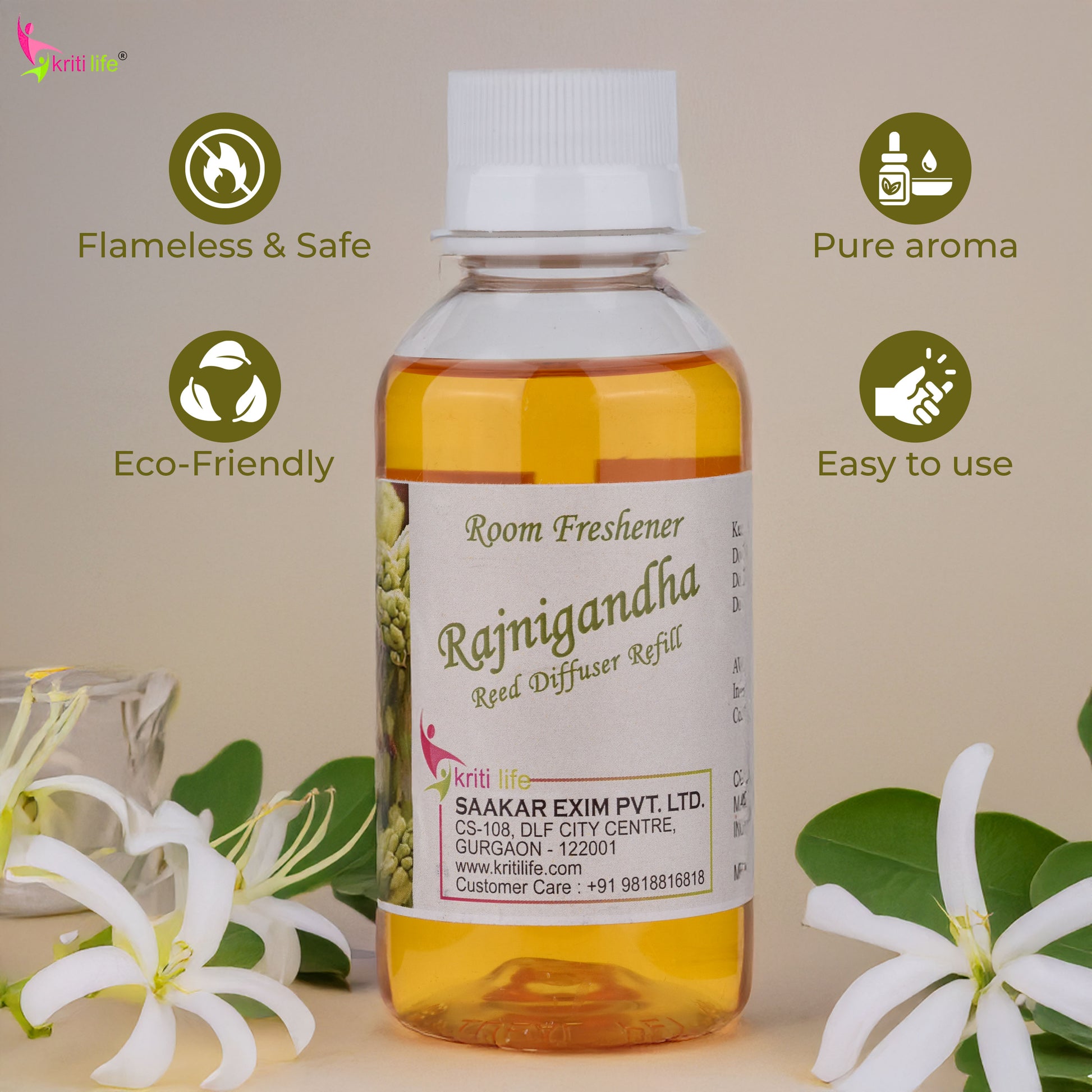 Kriti Life Reed Diffuser Refill - Rajni Gandha 90ML Long-Lasting Room Fragrance