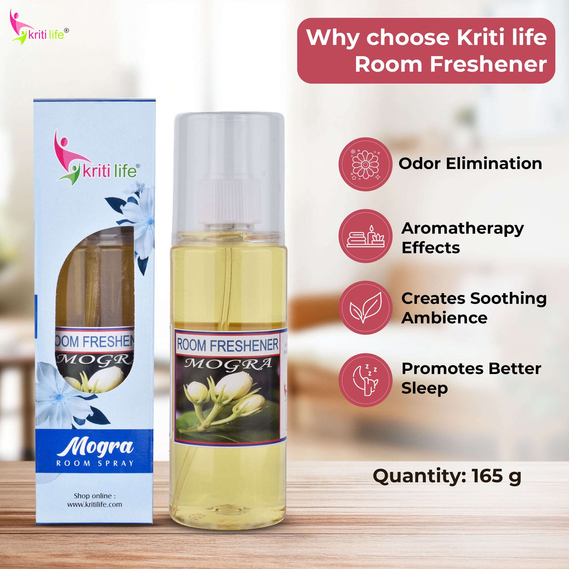 Kriti Life Room Spray - Mogra 165 ML Long-Lasting Fragrance for Home & Office