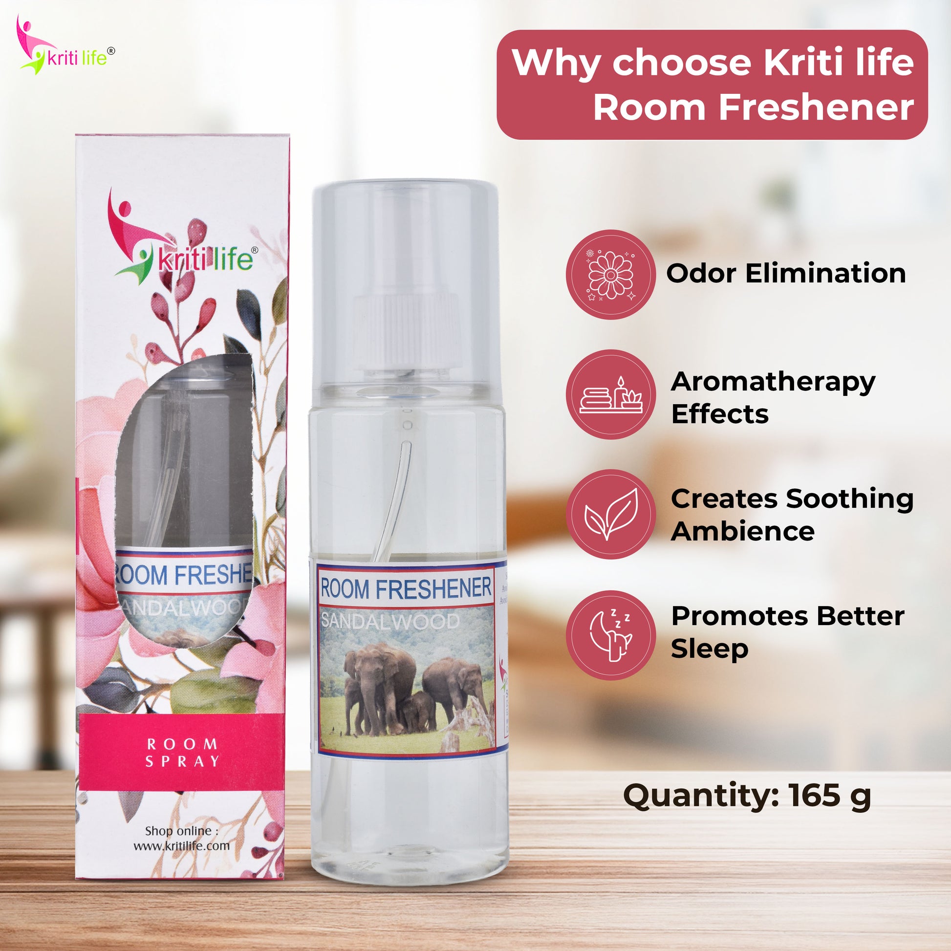 Kriti Life Room Spray - Sandalwood 165 ML Long-Lasting Fragrance for Home & Office