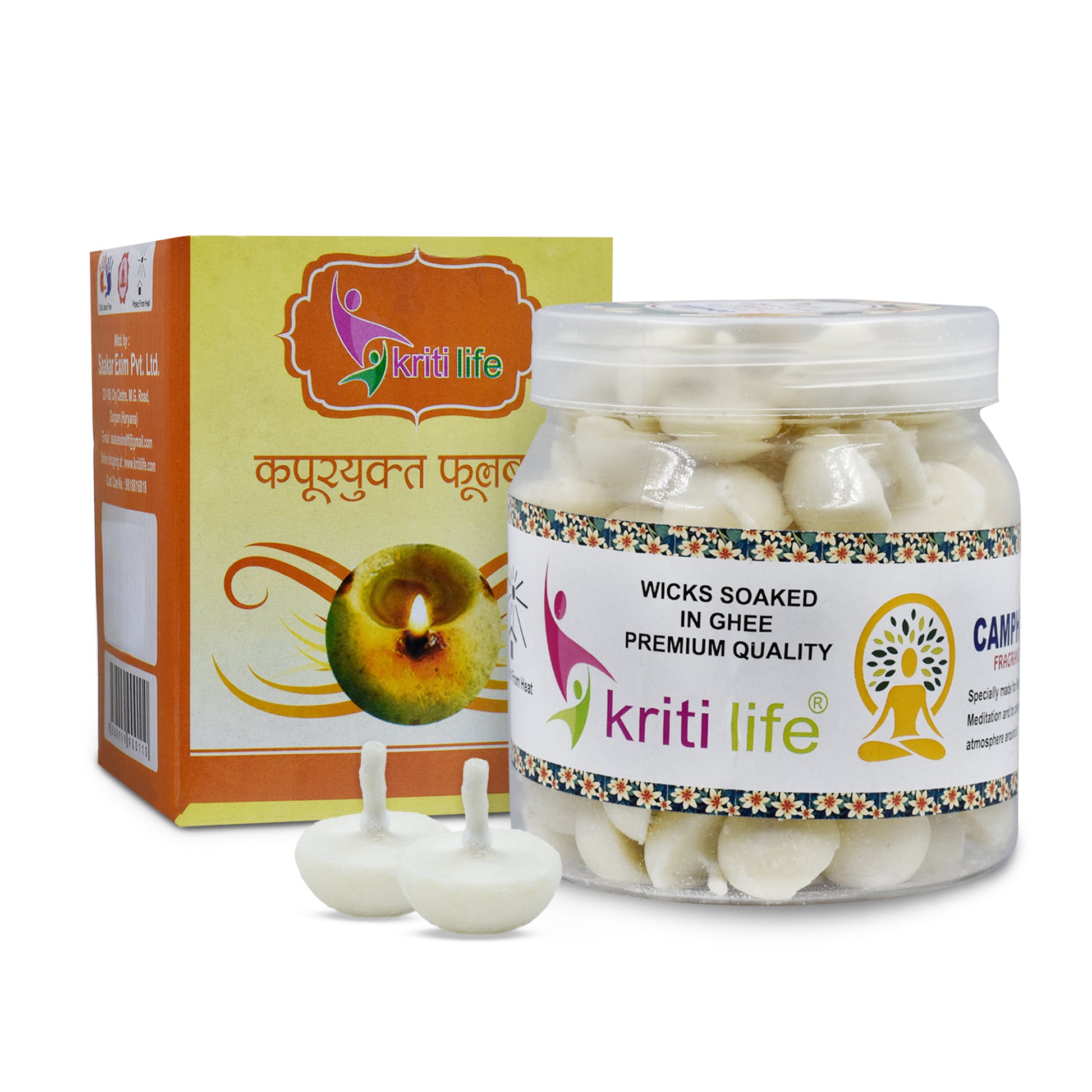 Kriti Life Scented Ghee Jyot Batti - Camphor 100 Pcs for Puja Rituals