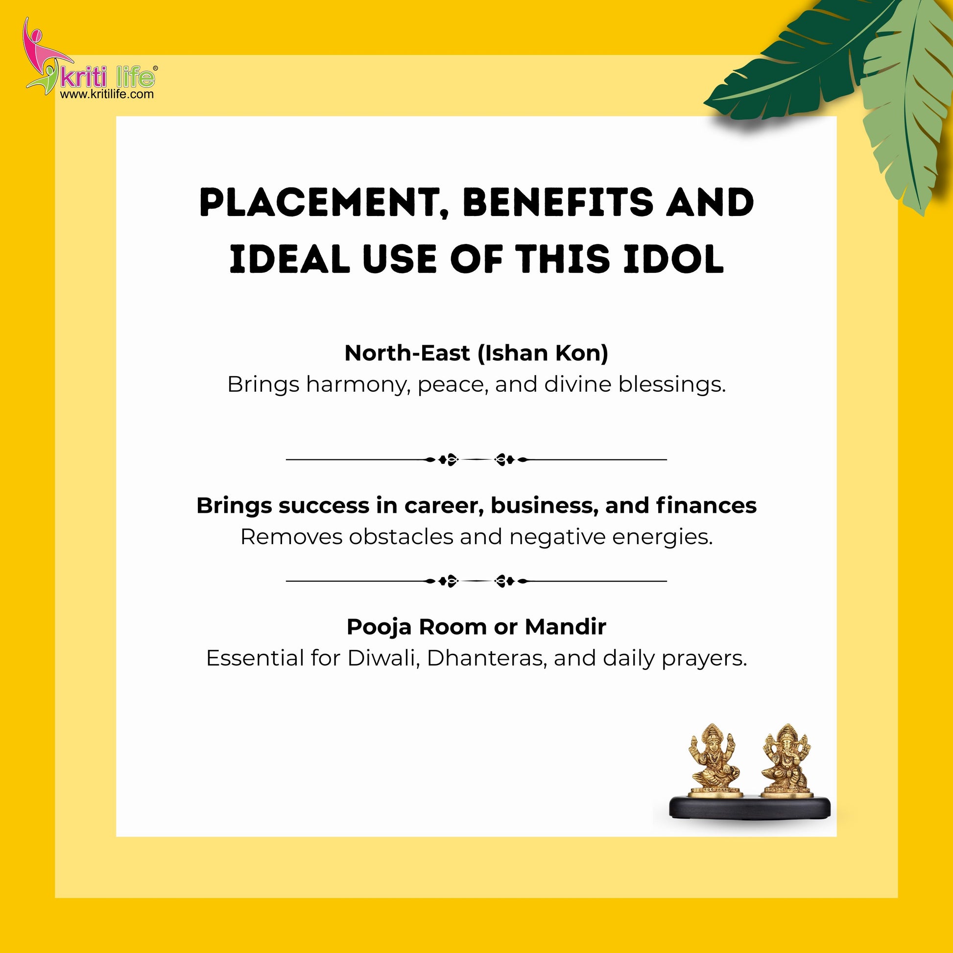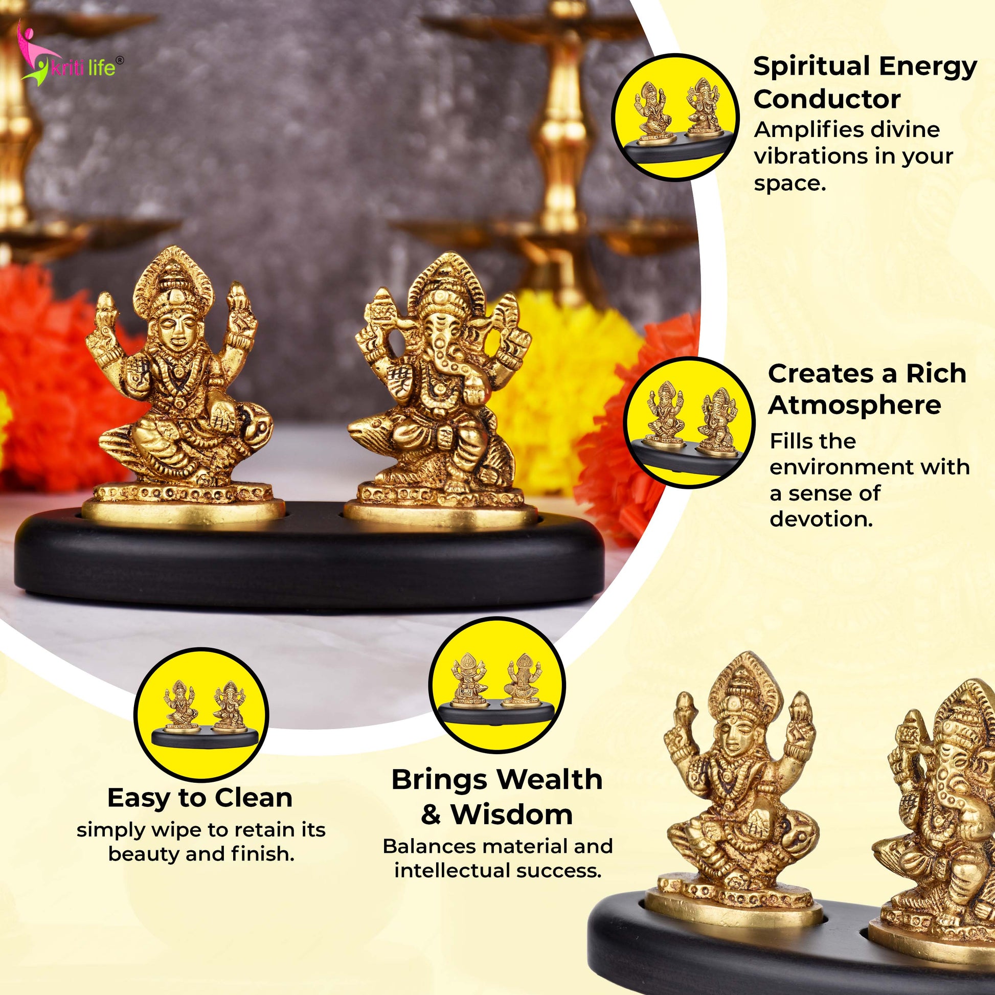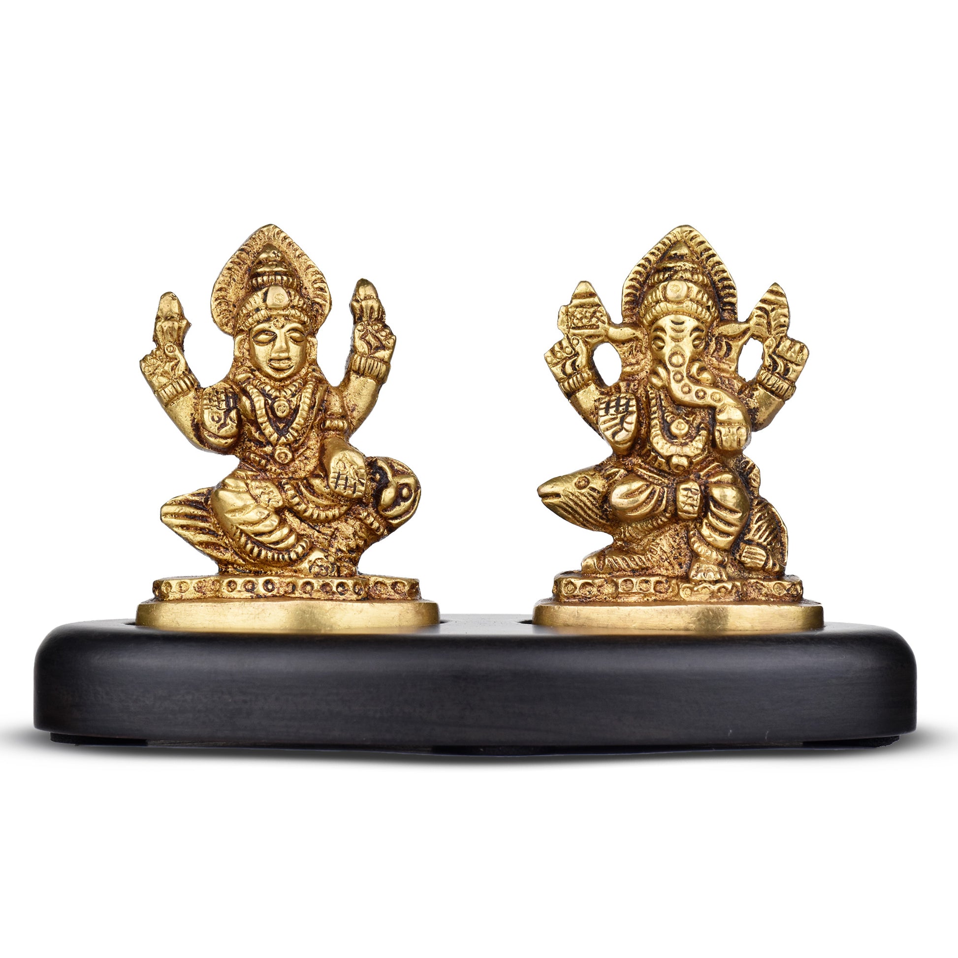 Made from durable brass with an antique finish, the idols are seated on a smooth wooden platform that enhances their divine presence. A perfect choice for Diwali pooja, home temples, offices, and as a meaningful gift for loved ones
