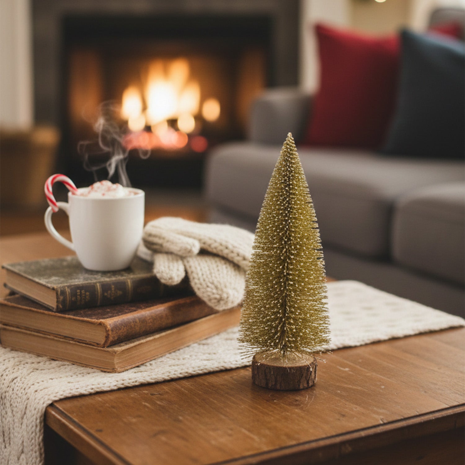 Bring festive charm to any corner of your home with this Golden Bottle Brush Christmas Tree by Kriti Life. Designed with a premium shimmer finish, this 20 cm tree adds a warm and elegant touch to your Christmas decoration. The realistic bottle-brush texture, soft snowy effect, and natural wooden log base make it the perfect accent for tables, desks, shelves, gift hampers, and office décor.