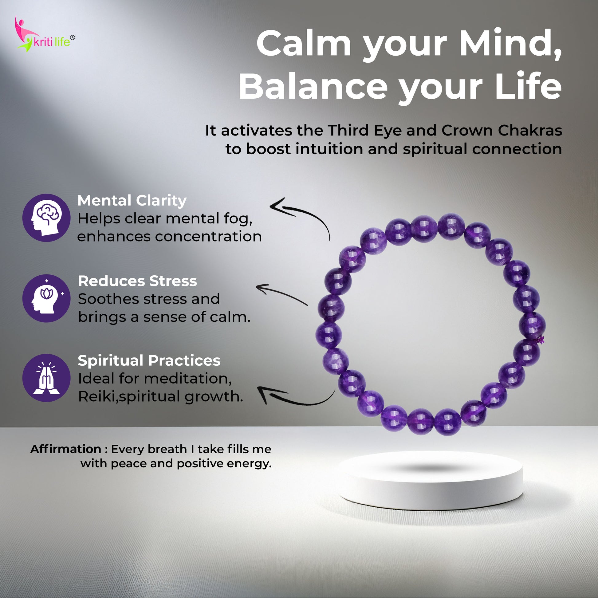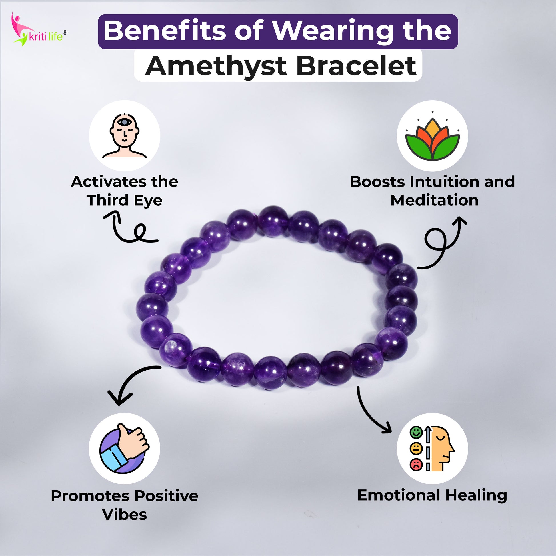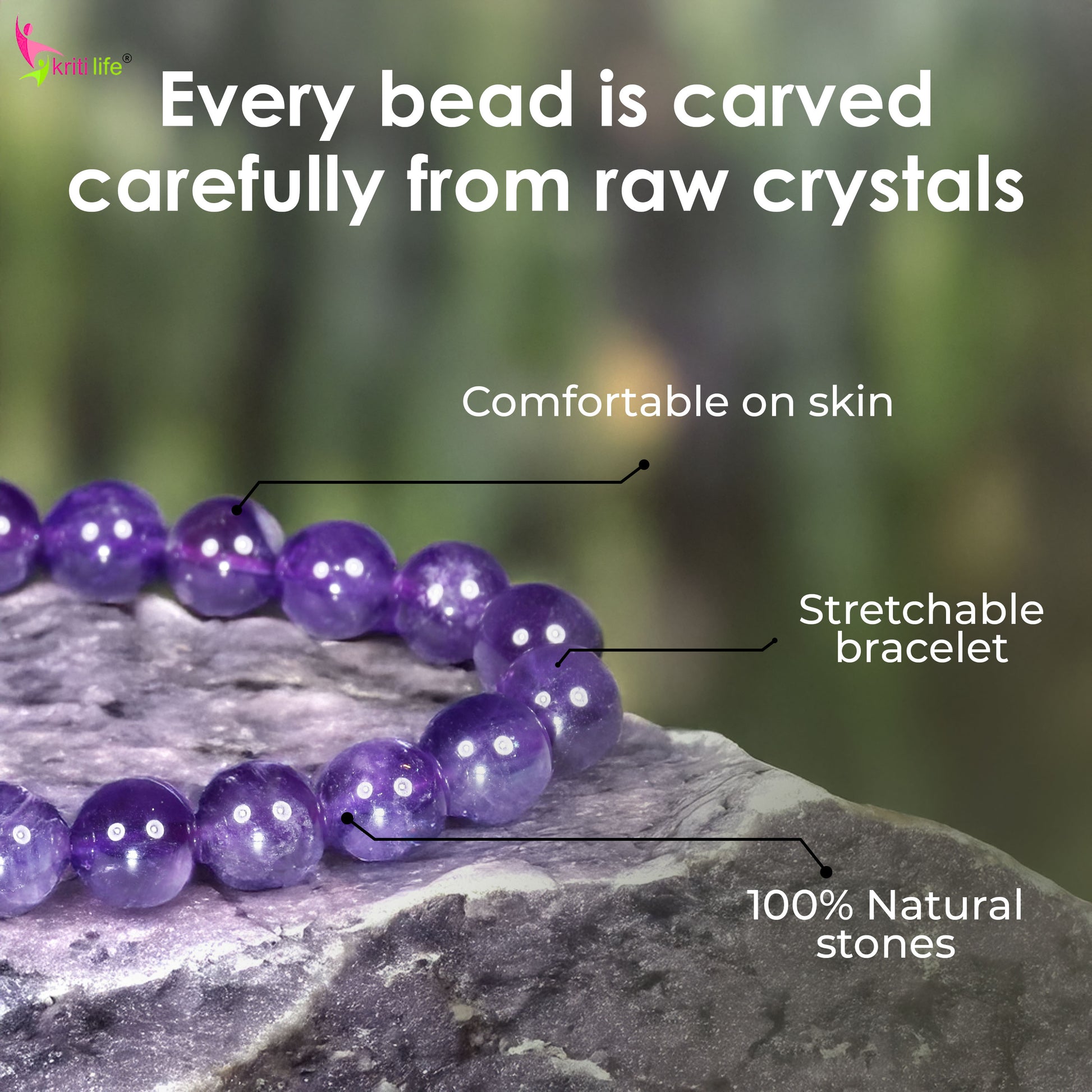 Wear your amethyst bracelet on your left wrist to receive its calming and healing energy. For grounding and protection, you can wear it during meditation, yoga, or throughout your day. Cleanse it regularly under moonlight or with sage to keep its energy strong.