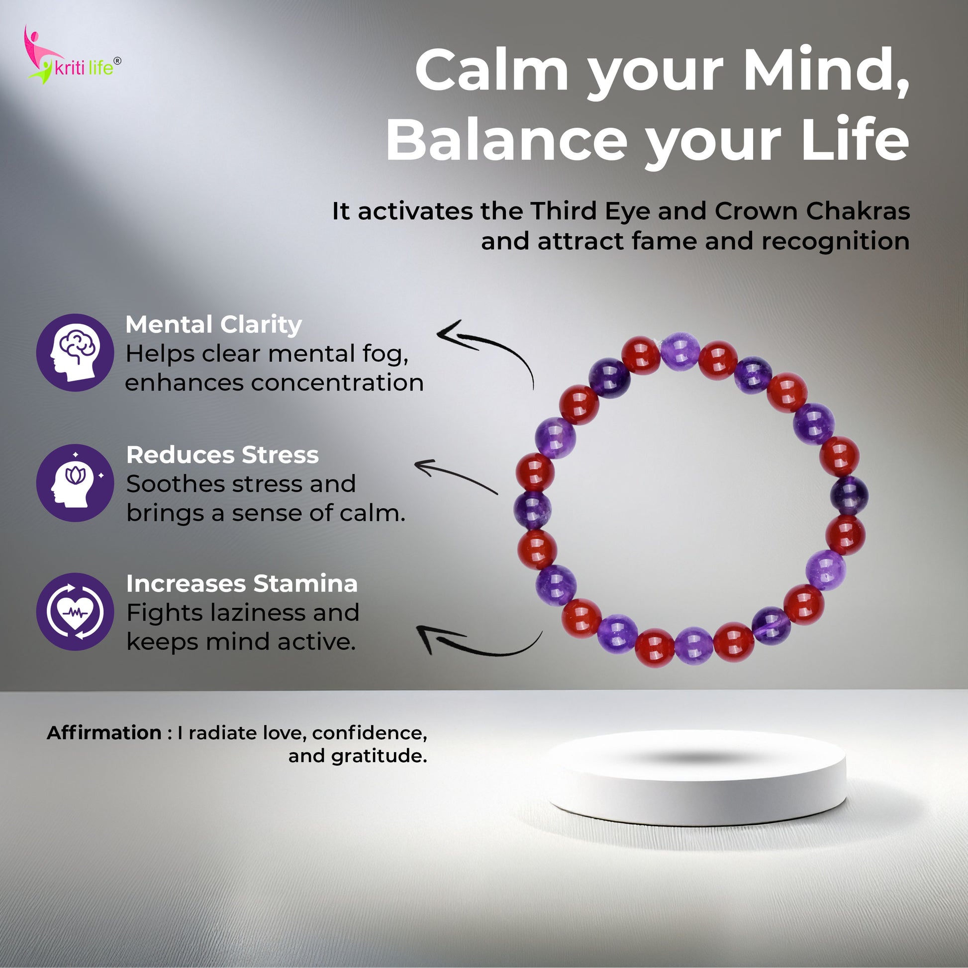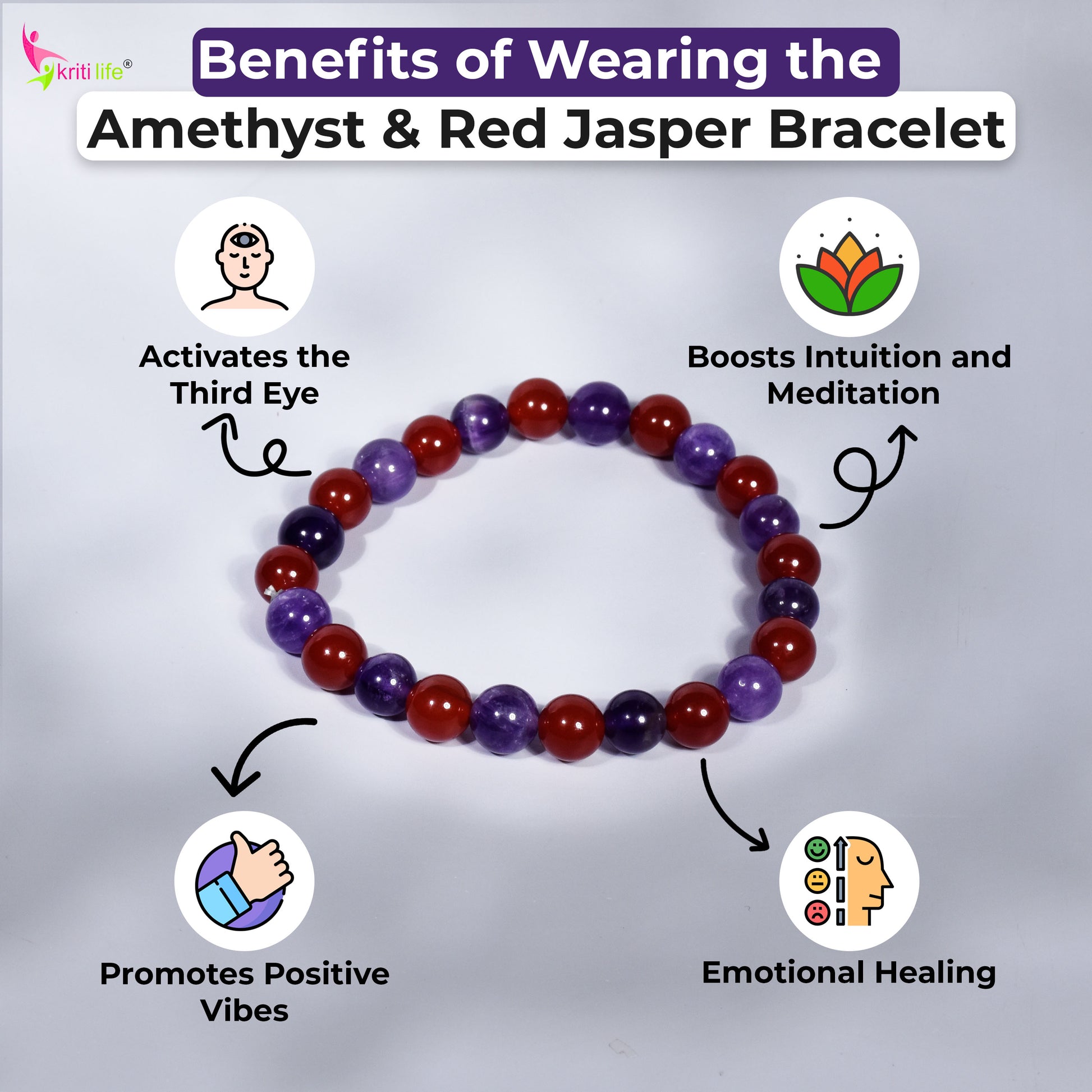Amethyst & Red Jasper Crystal Bracelet – Calm Your Mind, Boost Your Confidence