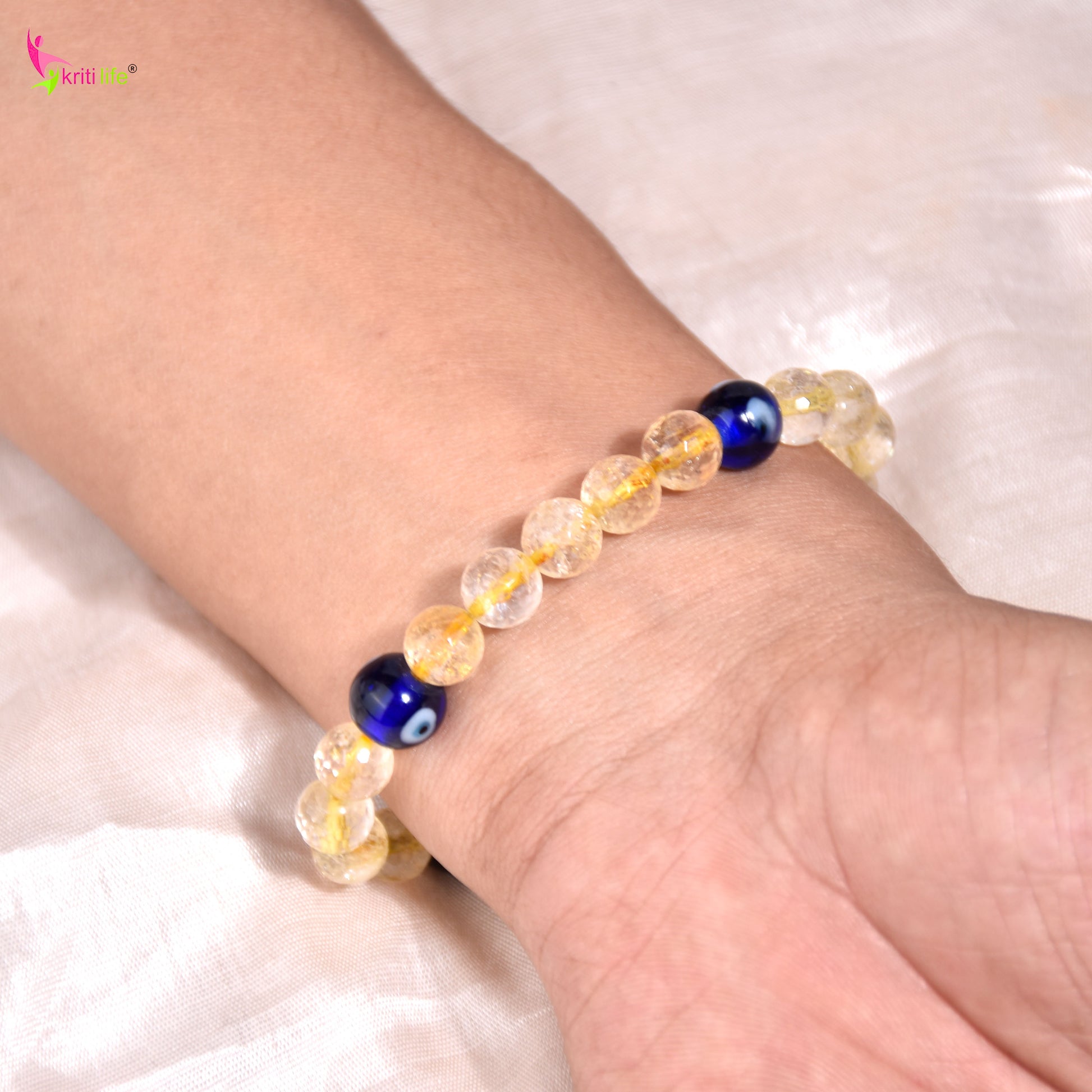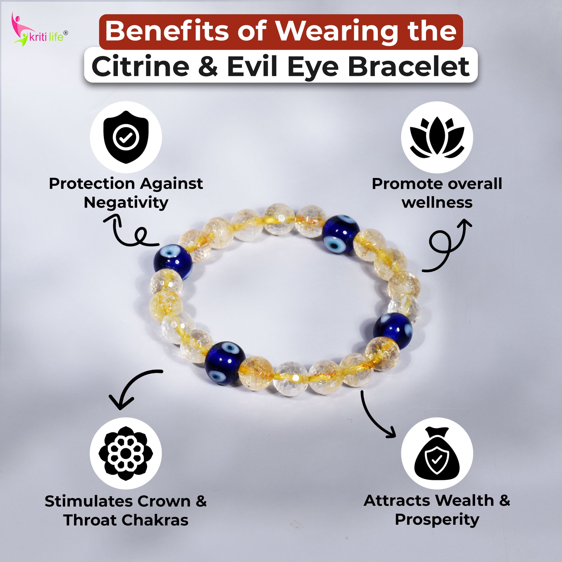 Manifest Prosperity & Shield Your Aura with Citrine & Evil Eye Crystal Bracelet -