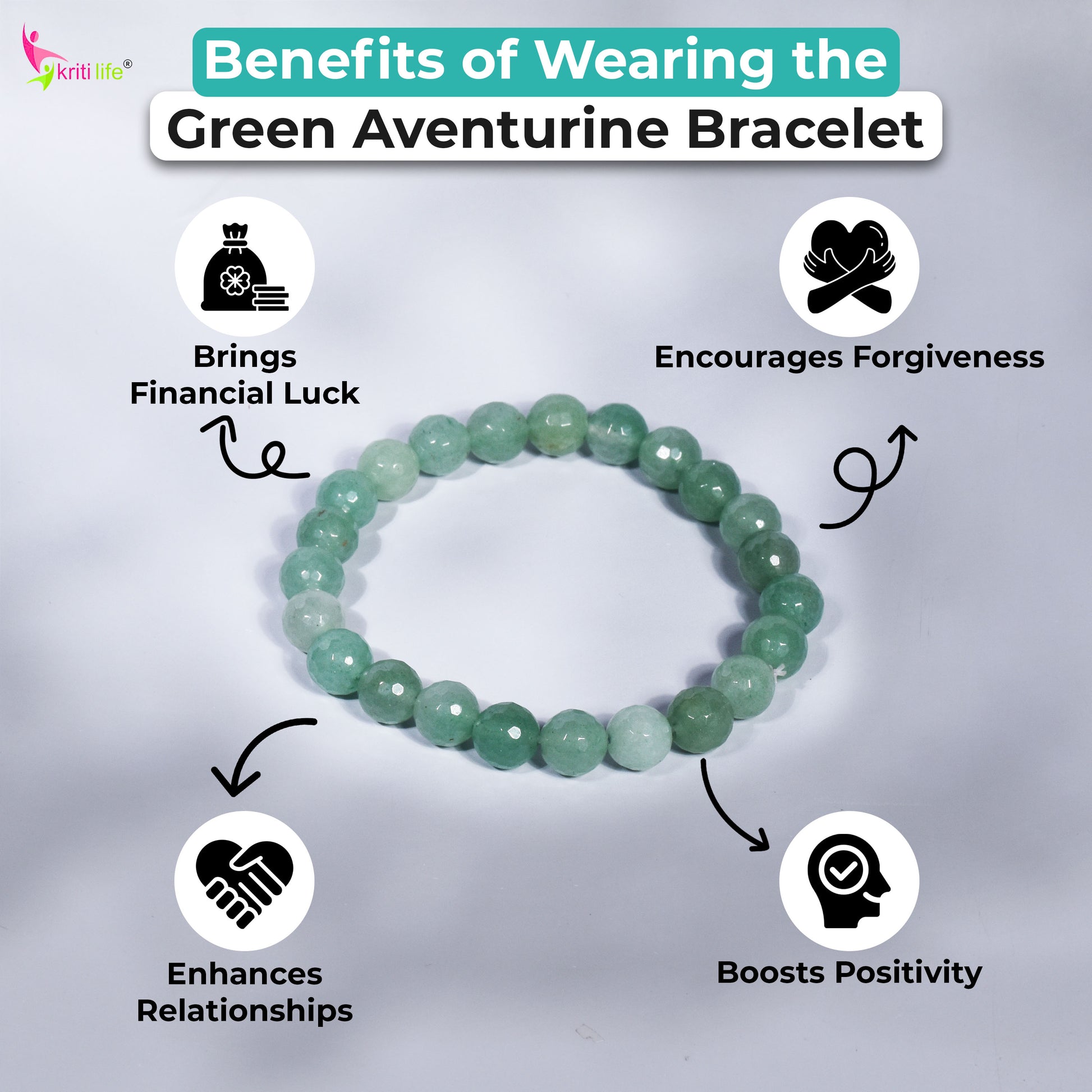 Natural Green Aventurine Crystal Bracelet for Money Luck, Positivity & Emotional Healing