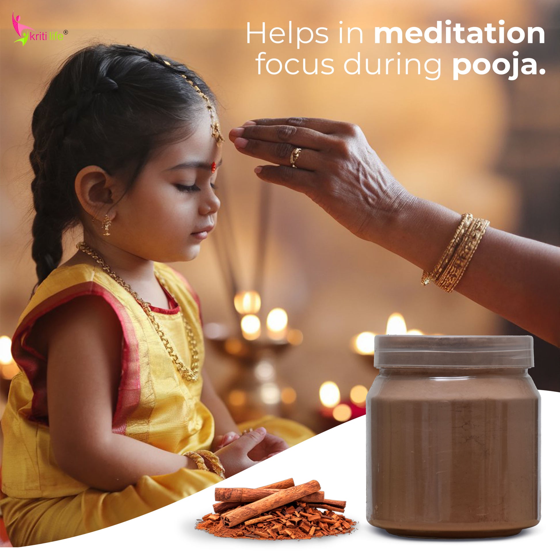Elevate your spiritual practices with Organic Sandalwood Powder from Kriti Life, made from 100% pure and natural sandalwood. Revered in Hindu rituals, sandalwood powder is used for puja, abhishekam, deity offerings, and meditation.