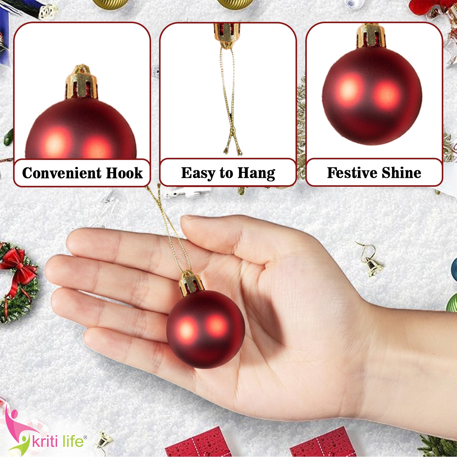 Lightweight, durable, and easy to hang with the attached golden string, these baubles are perfect for Christmas trees, wreaths, garlands, living room décor, office decoration, parties, and gifting.