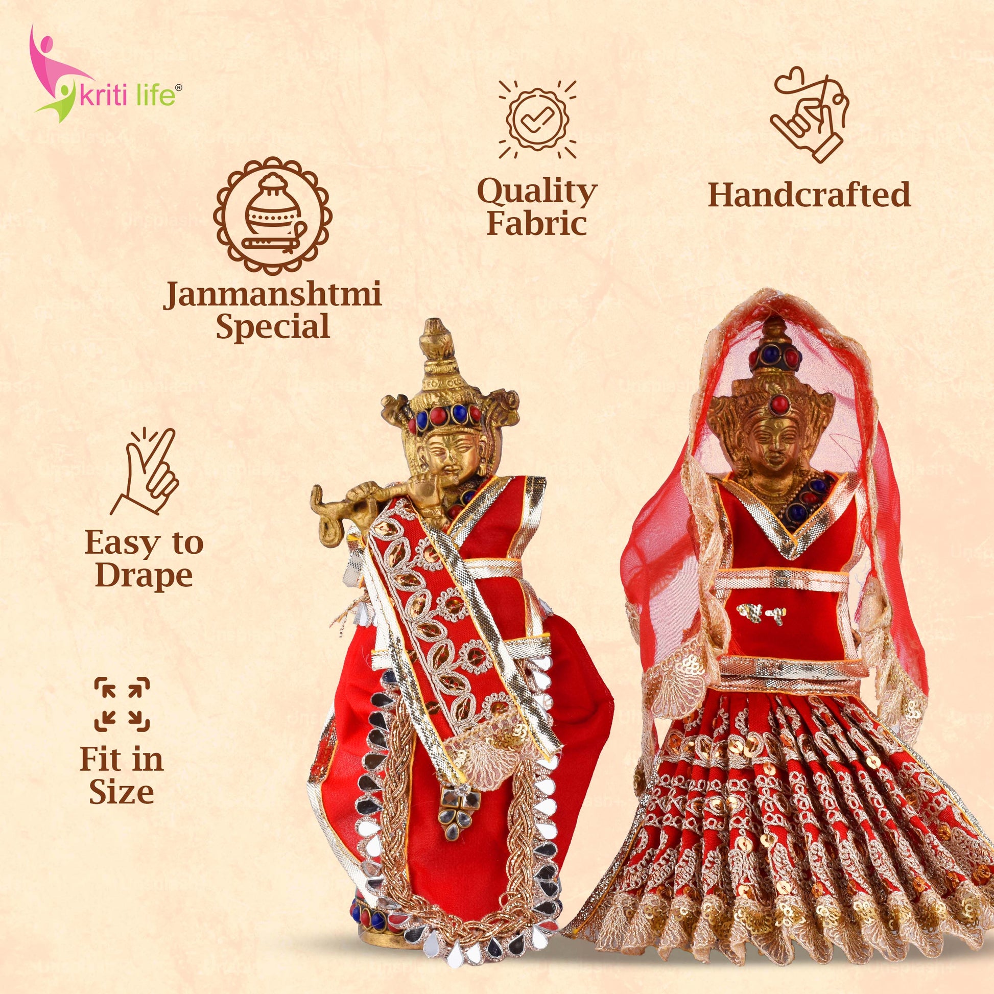 Red Radha Krishna Dress Set for 7.5 Inch Idol – Traditional Embroidered Vastra with Golden Lace