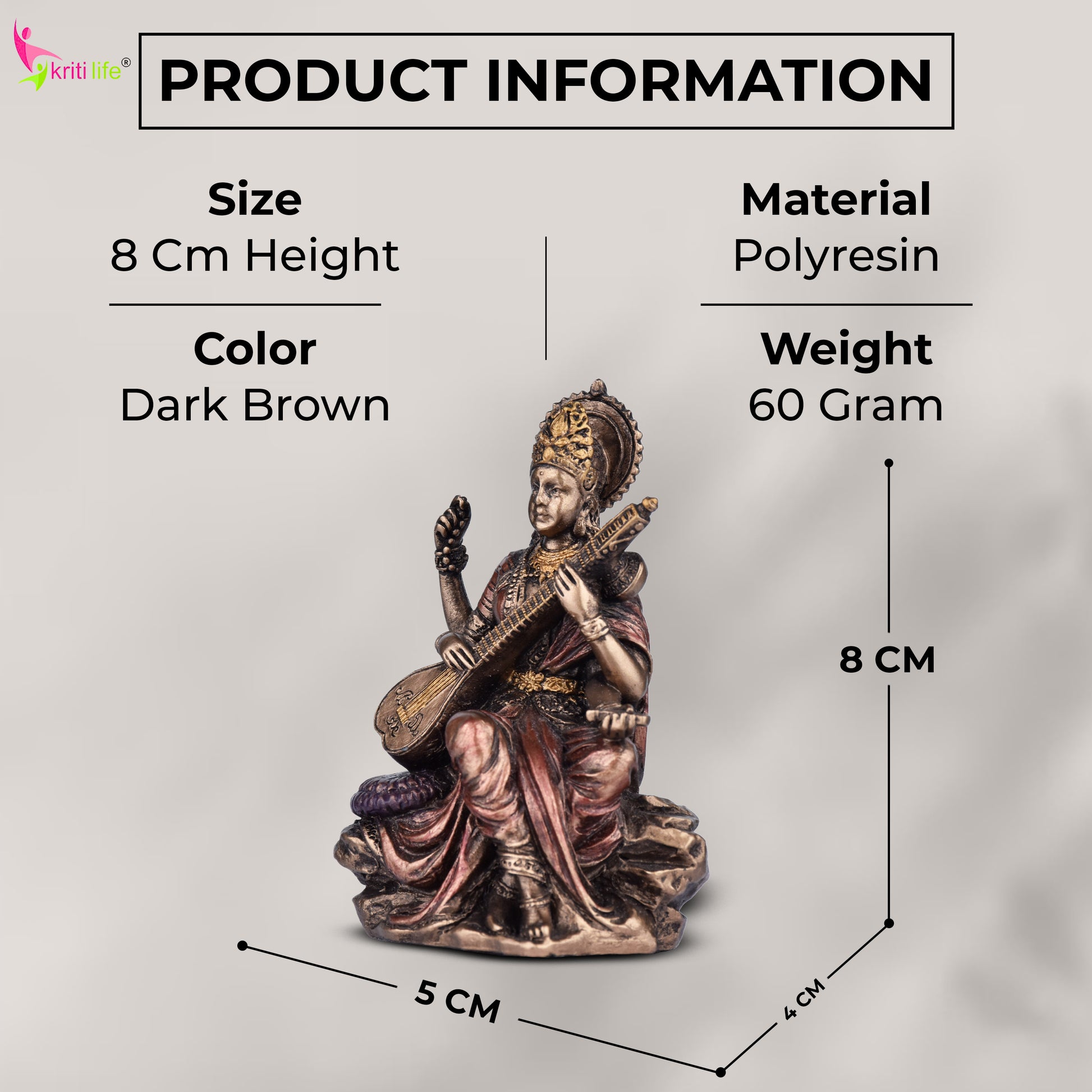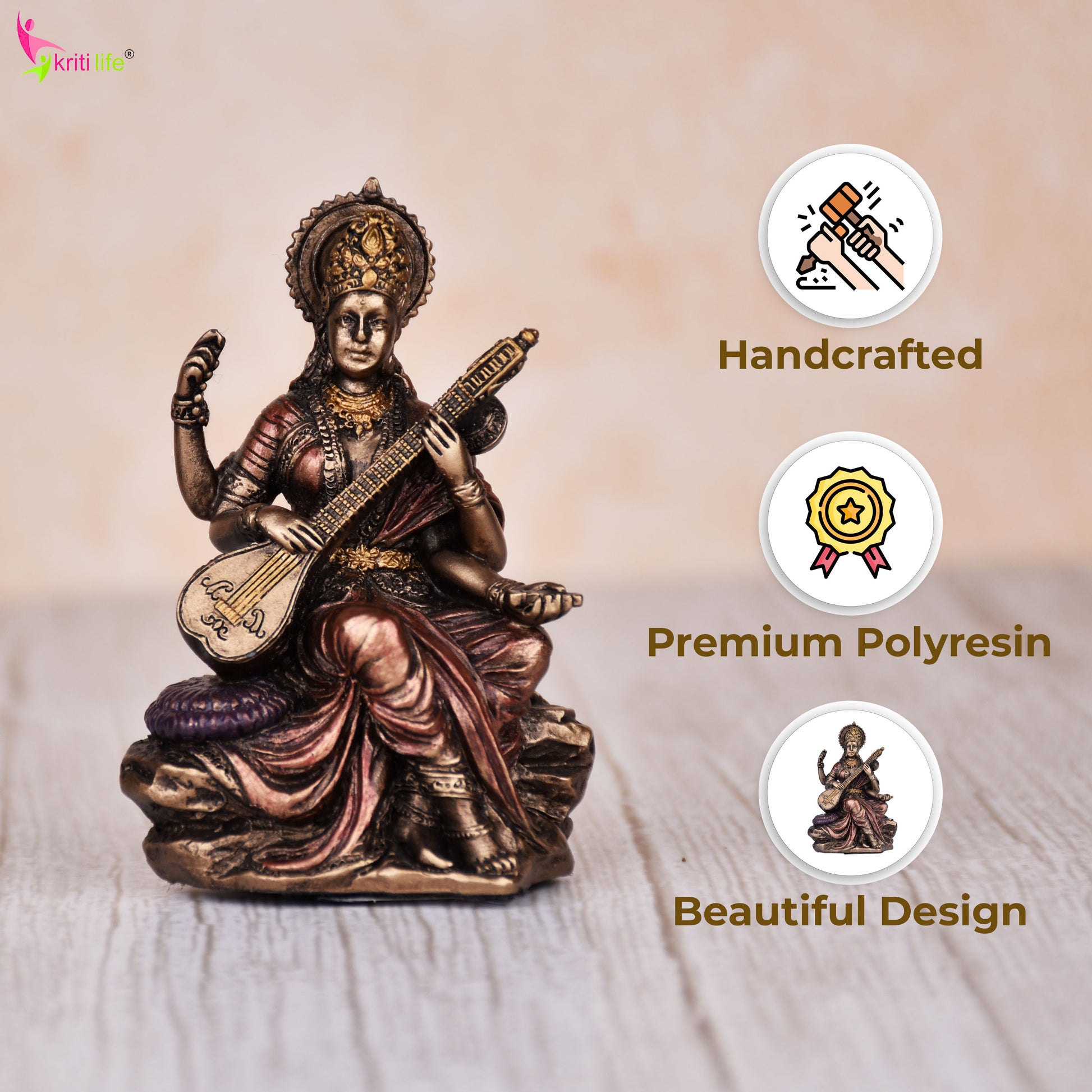 Saraswati Idol – 3 inches - Mini Polyresin Goddess Statue for Study & Home Décor