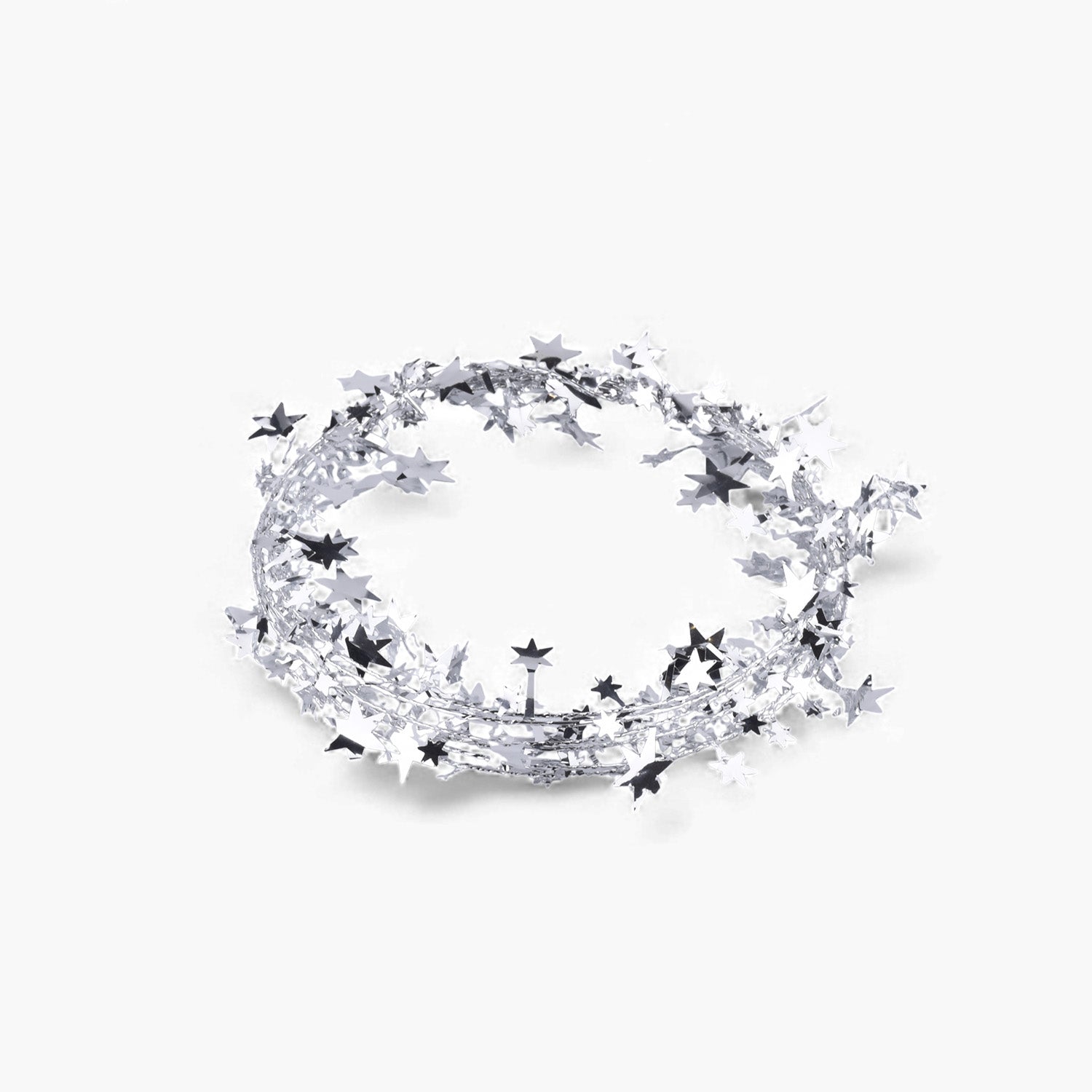Bring a twinkling festive charm into your home with this beautiful Metallic Star Garland. Designed with shiny star-shaped cutouts and a flexible metallic wire, this garland drapes effortlessly over Christmas trees, mantels, stair railings, door frames, gift hampers, and party décor. The high-shine reflective finish catches every light, creating a magical starlight effect that instantly brightens your holiday decorations. Lightweight, reusable, and easy to shape, it adds the perfect touch of sparkle to any festive setting.