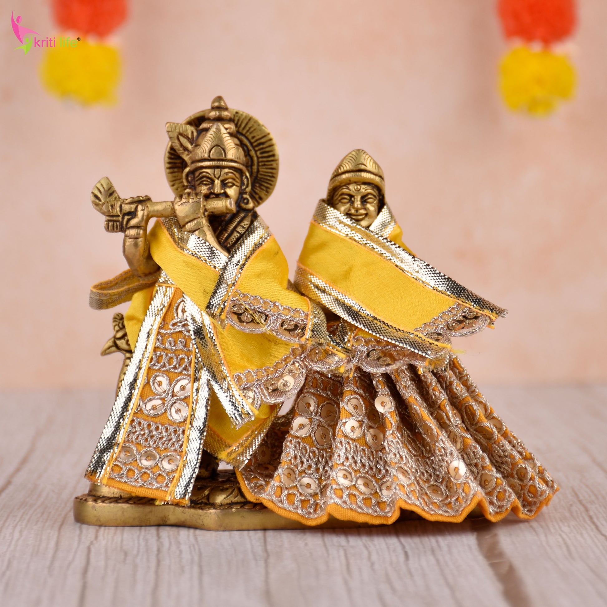Yellow Radha Krishna Dress Set for 4 Inch Idol – Traditional Vastra with Golden Detailing
